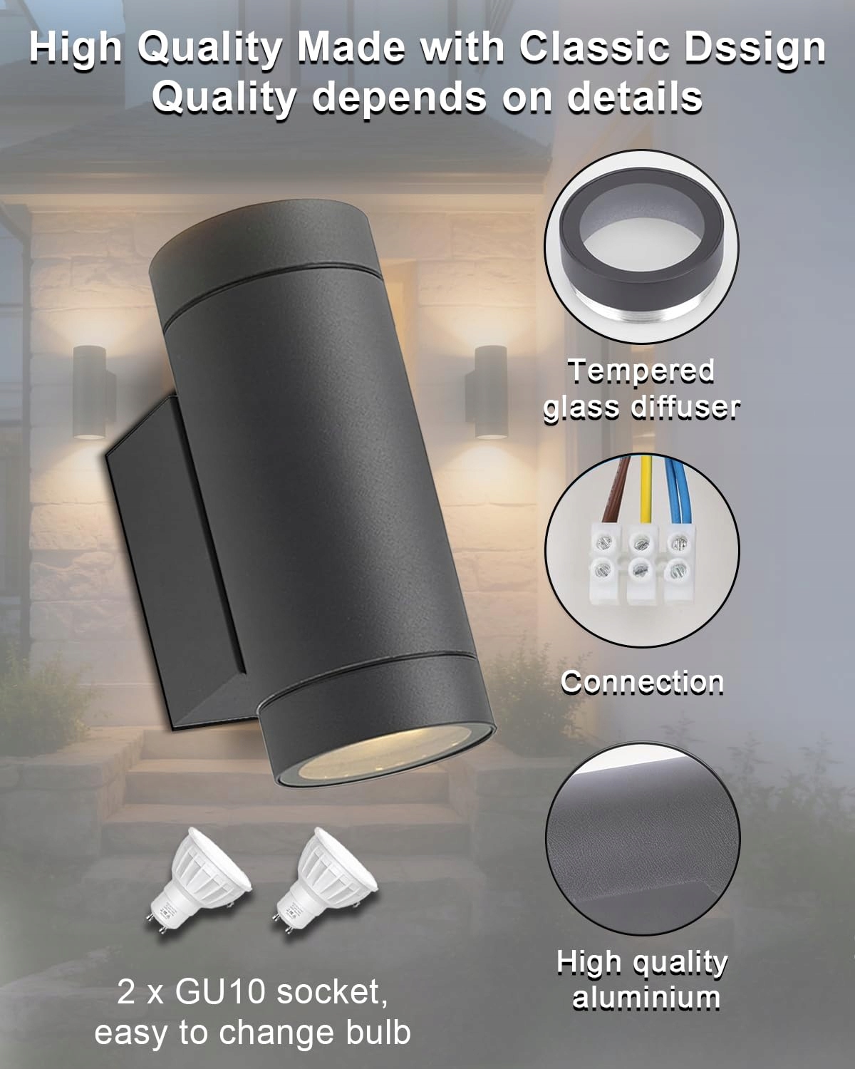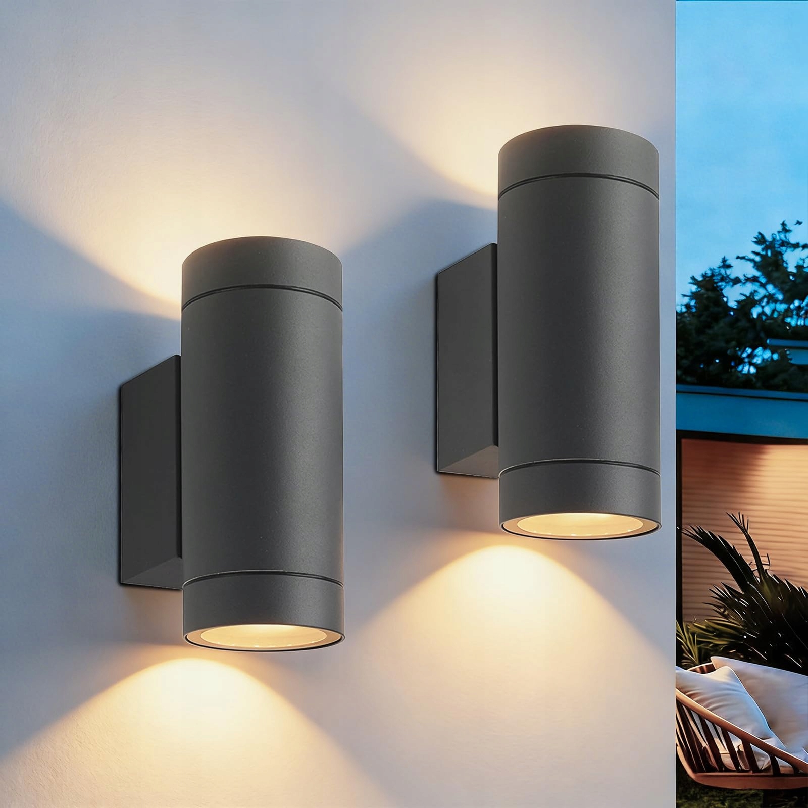 EBION 2 sztuki kinkietów zewnętrznych GU10, lampy górne i dolne na zewnątrz, aluminiowa lampa ścienna na zewnątrz, do ogrodu, tarasu, balkonu, wejścia, IP65 wodoodporna, antracyt (bez źródeł światła)