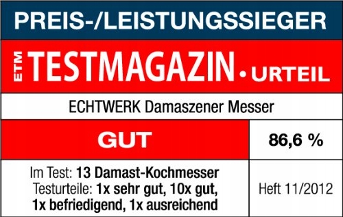 ECHTWERK Noże damasceńskie, noże kuchenne, noże szefa kuchni, zakrzywione ostre ostrze do precyzyjnego krojenia mięsa, ryb i warzyw, ergonomiczny uchwyt z drewna Pakka, długość ostrza ok. 18 cm, pudełko do przechowywania