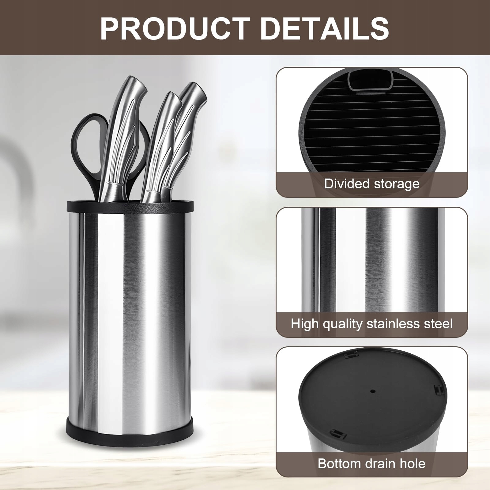 Eclove Okrągły Blok na Noże z Wkładem Stal Nierdzewna Uniwersalny Uchwyt | Premium Supply