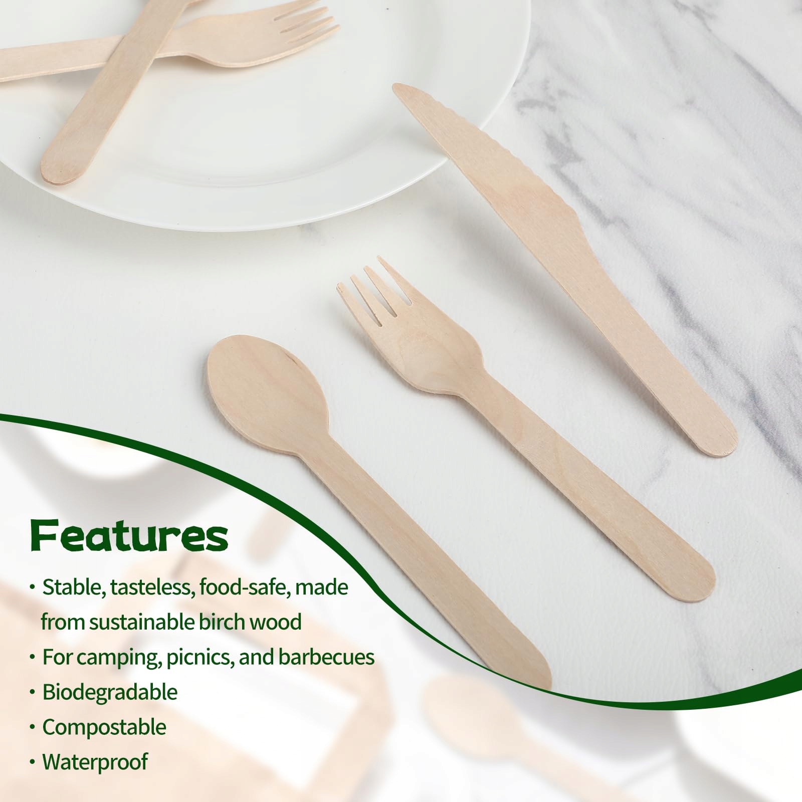 Stabilne i przyjemne w użyciu – Gładka powierzchnia, bez drzazg i wytrzymałe podczas krojenia. Noże, łyżki i widelce są lekkie i przenośne, idealne jako sztućce podróżne do szkoły, pracy lub na piknik.