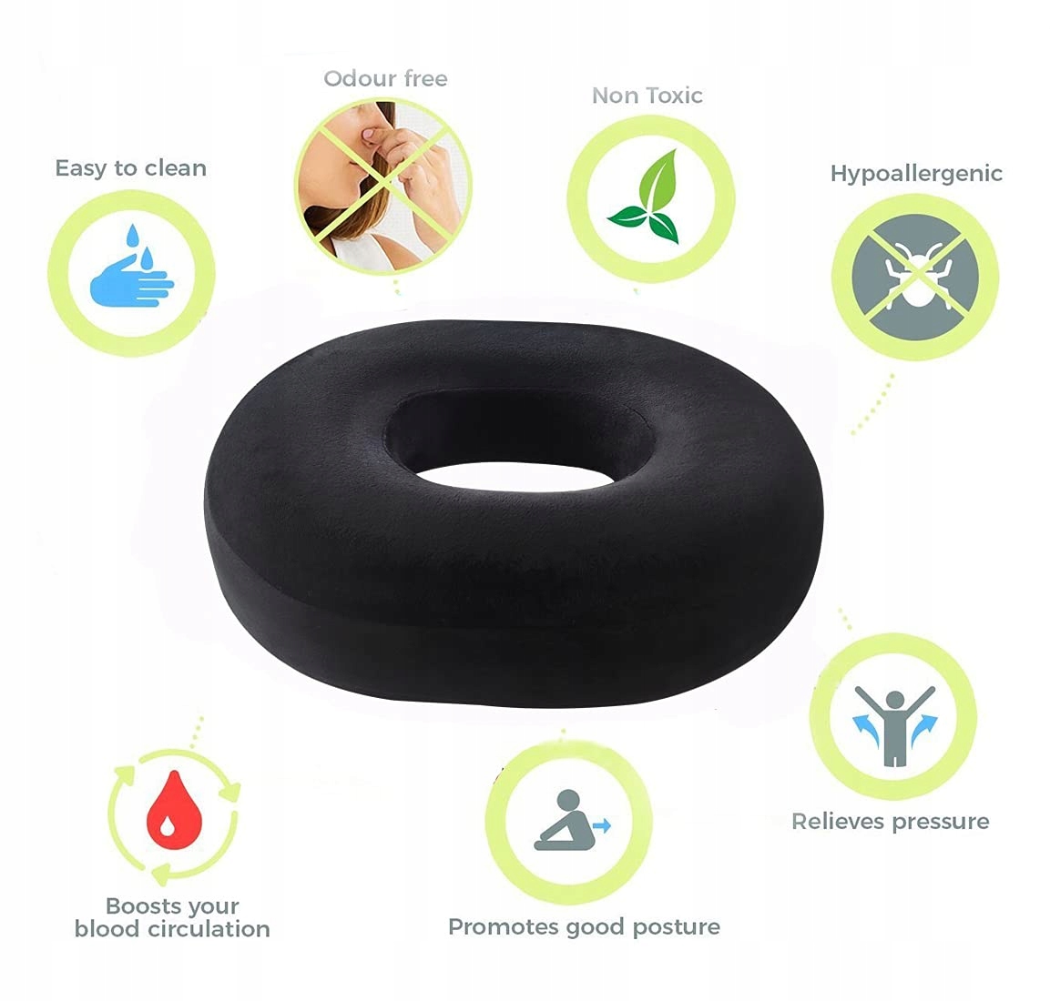 ZALECENIA DLA LEKARZY ORTOPEDÓW: Na podstawie zaleceń ekspertów unikalny design w kształcie donuta pomaga prawidłowo rozłożyć ciężar ciała podczas siedzenia i może zmniejszyć nacisk na biodra, plecy, ISG i okolice intymne. Jest idealny w czasie ciąży, porodu, komplikacji hemoroidalnych lub podczas rekonwalescencji po operacji