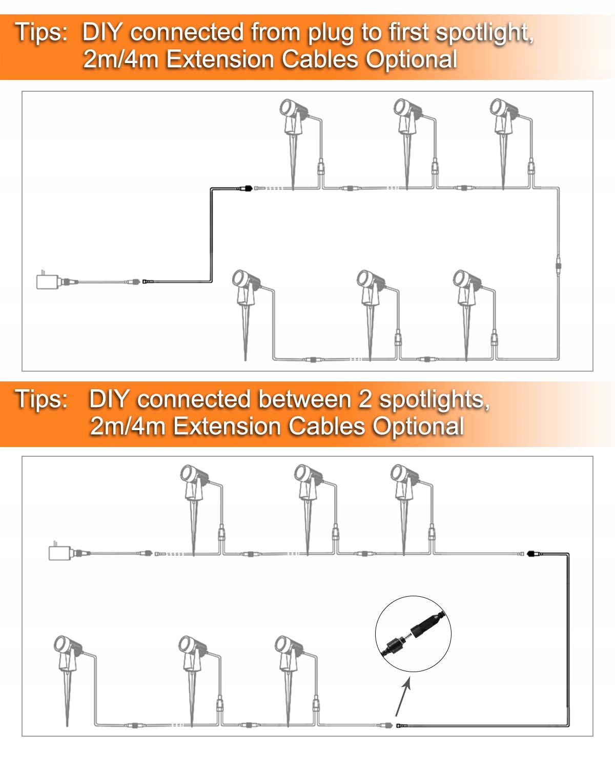 ECOWHO 2M LED Przedłużacz Do Lamp Ogrodowych Wodoodporny Zestaw 2 Sztuki | Premium Supply