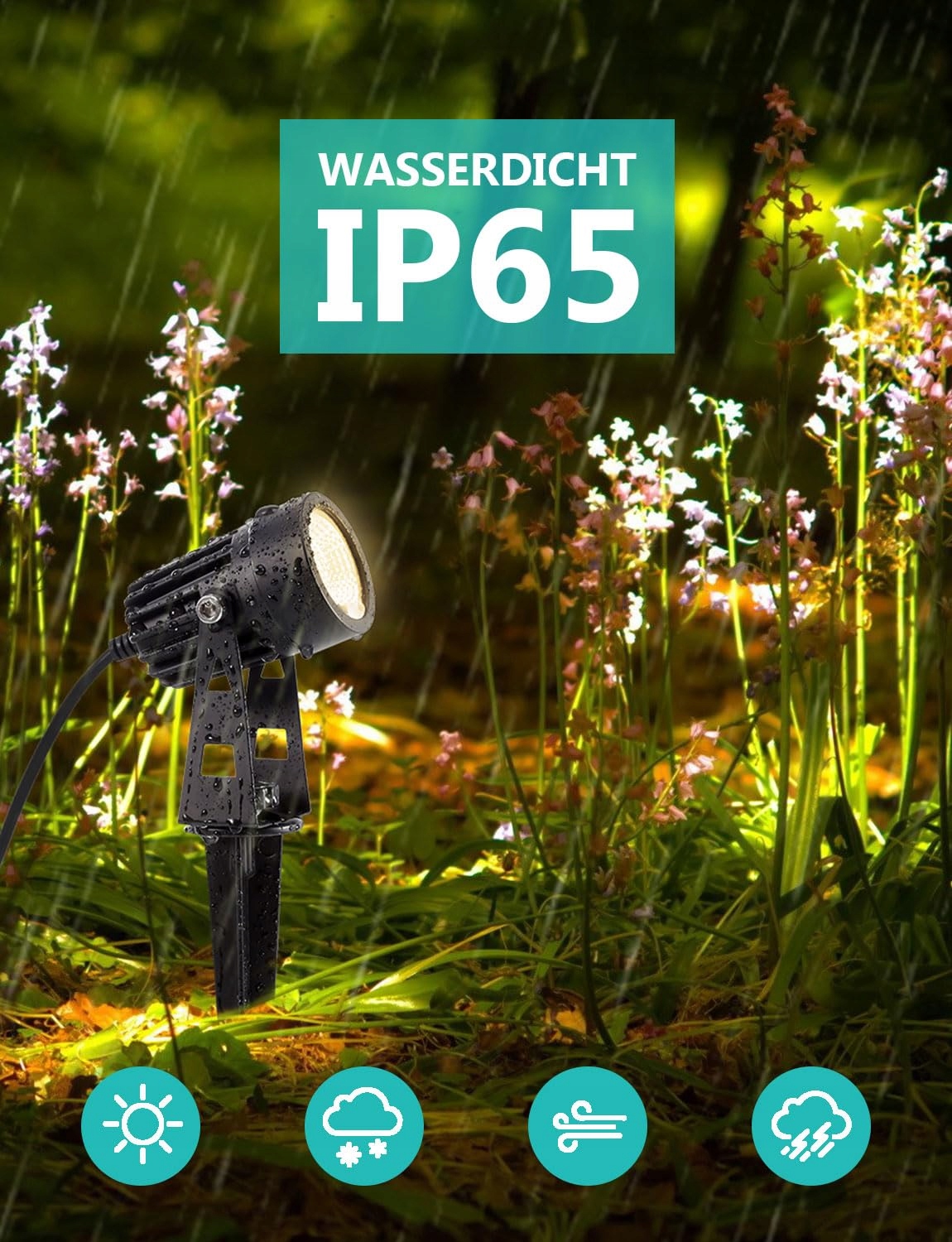 [IP65 wodoodporna lampa ogrodowa] Wysokiej jakości obudowa z odlewanego ciśnieniowo aluminium i wodoodporny pierścień gumowy chronią lampę ogrodową przed deszczem i kurzem, co czyni ją stabilną i trwałą. Adapter jest wyposażony w wklejany design i jest nawet wodoodporny zgodnie z normą IP67, co czyni go idealnym do użytku na zewnątrz.