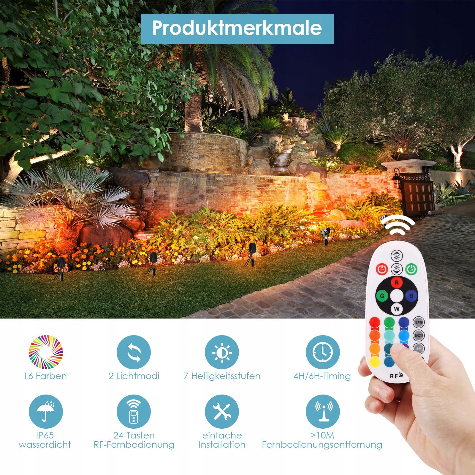 ECOWHO RGB oświetlenie ogrodowe LED z pilotem i timerem, wodoodporne reflektory ogrodowe RGB IP65 z zasilaniem, 21M oświetlenie ogrodowe z kołkiem do ziemi na zewnątrz do ogrodu, trawnika, drzew, ścieżek, imprez i stawu (6 sztuk)