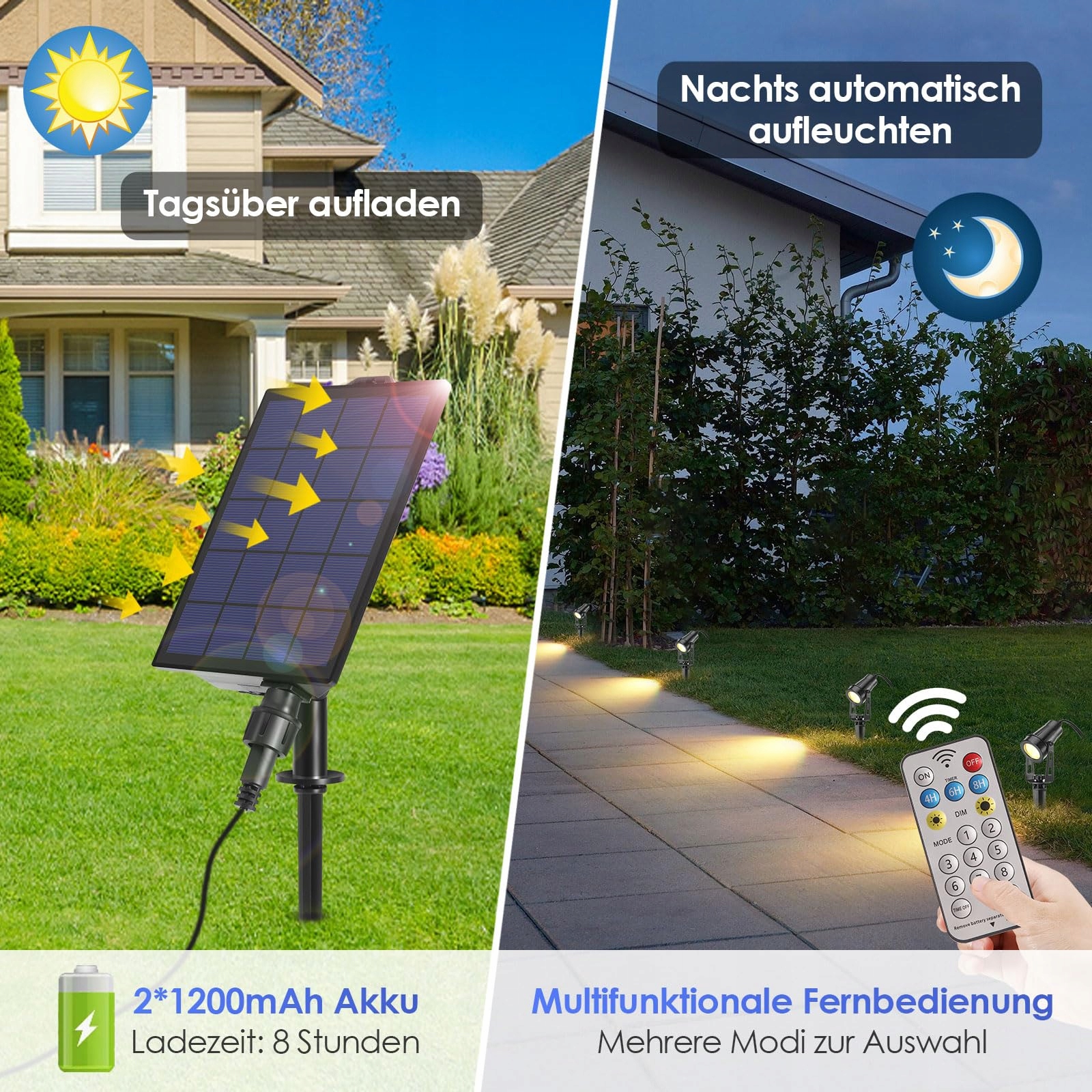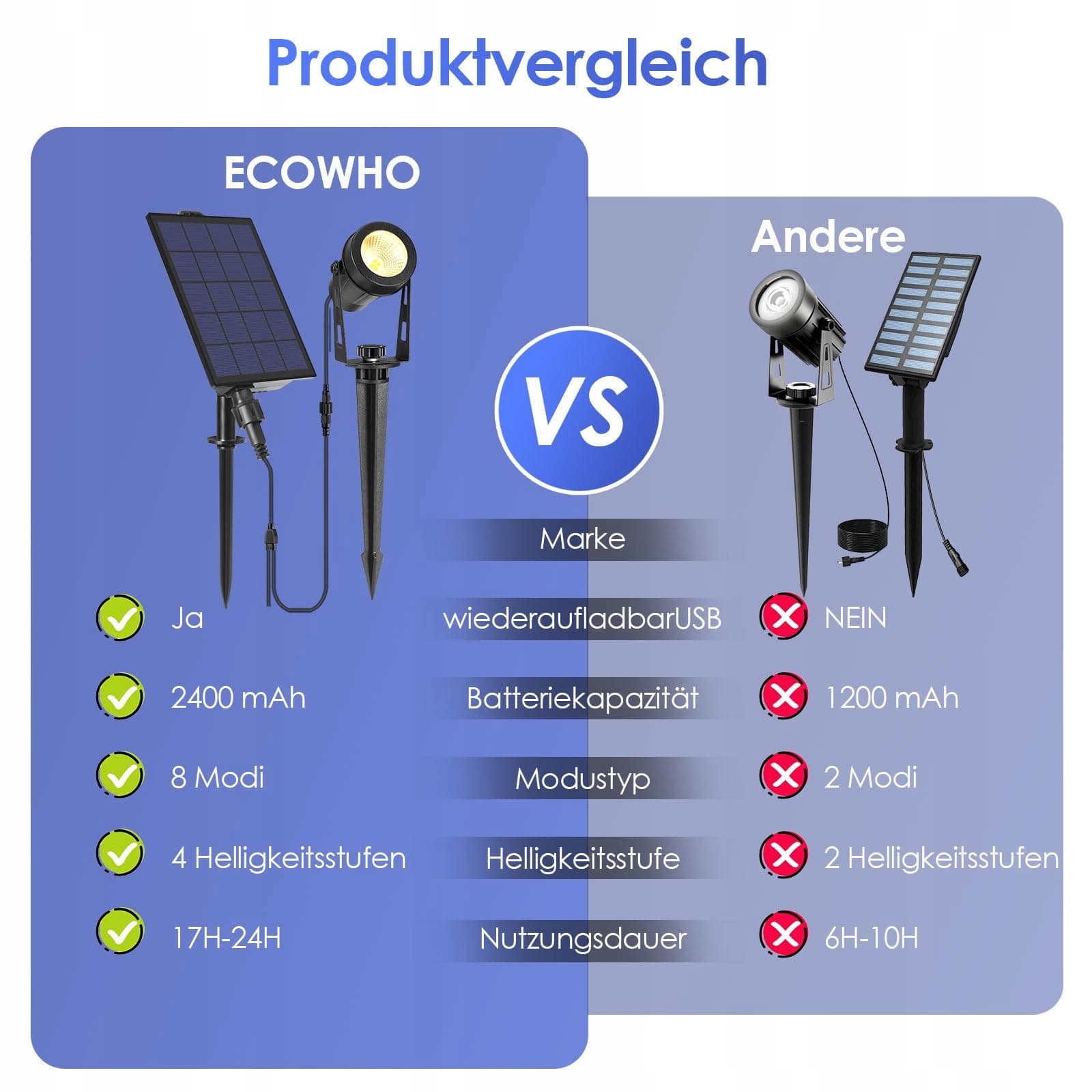 ECOWHO Solarne oświetlenie ogrodowe na zewnątrz z pilotem, reflektory solarne do ogrodu z kolcem, wodoodporne IP65 LED lampy ogrodowe, ściemnialne reflektory solarne do drzew i krzewów (ciepła biel, 4 sztuki)