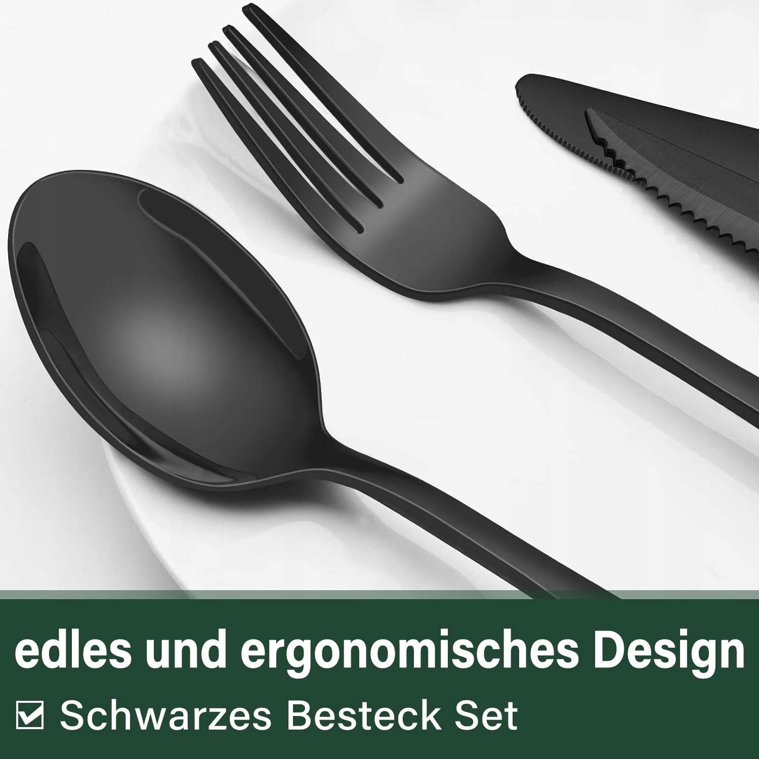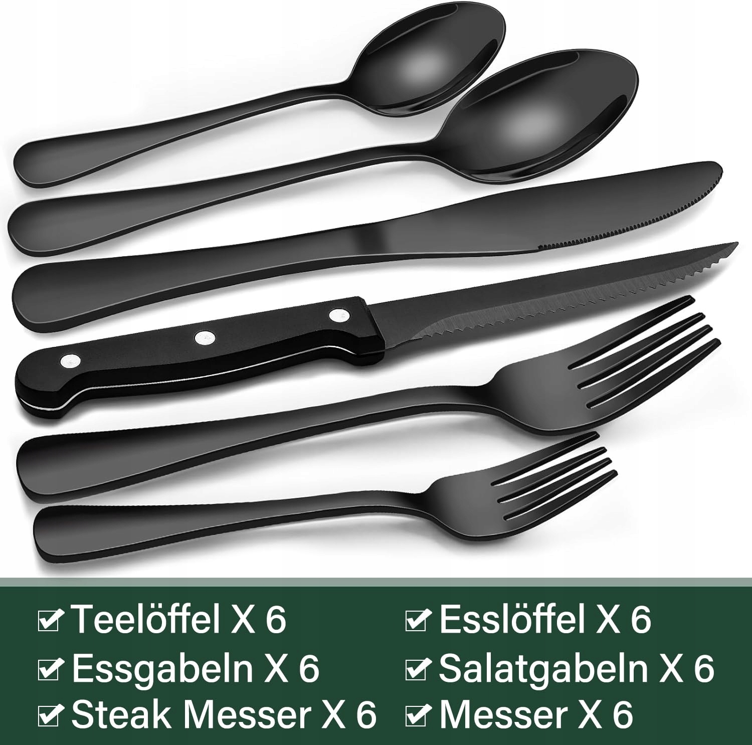 EDELSTAHL 36-Piece Black Cutlery Set for 6, Dishwasher Safe | Premium Supply
