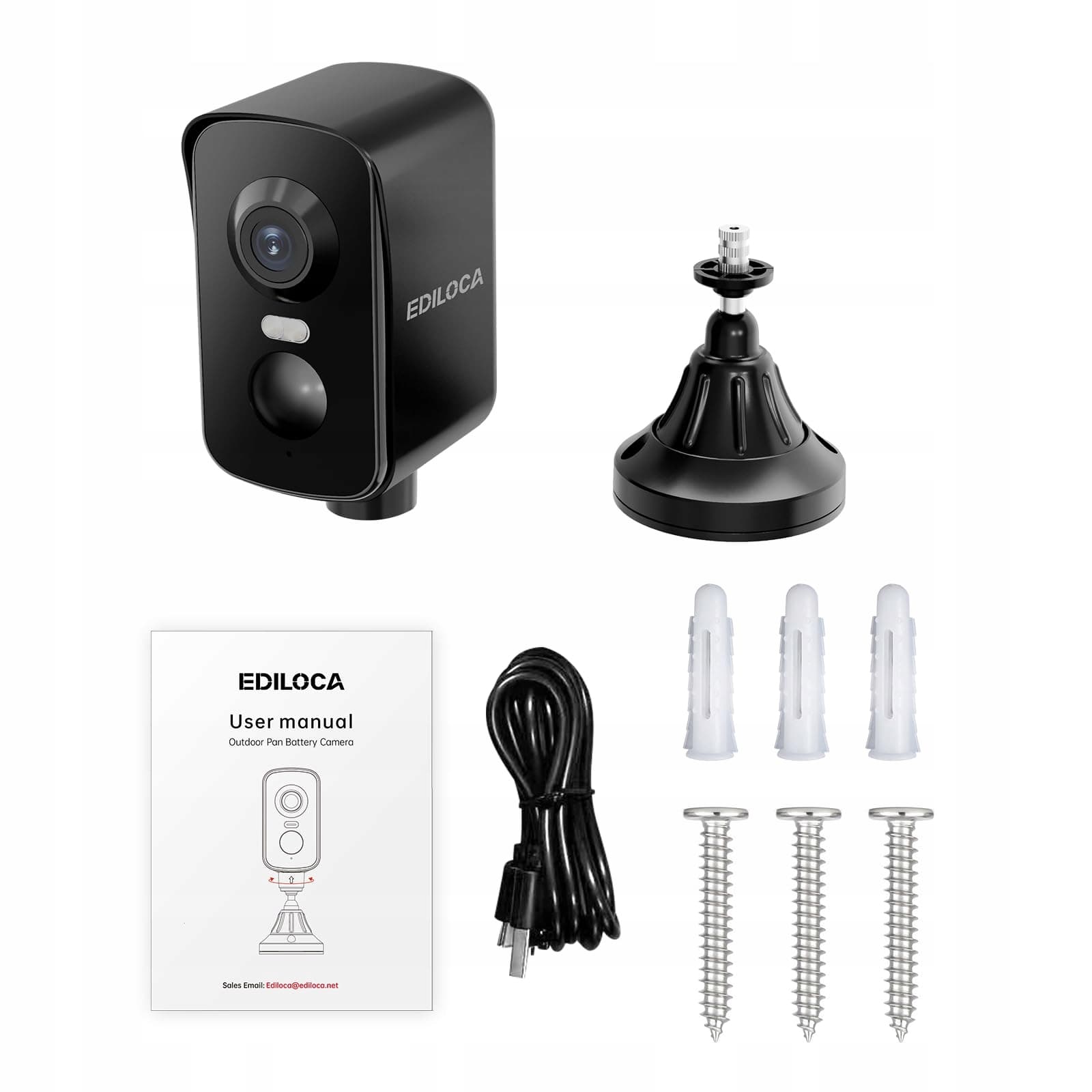 Ediloca 2K/3MP Kamera monitoringu zewnętrznego na akumulator, bezprzewodowa kamera Wi-Fi do monitoringu na zewnątrz/wewnątrz, zakres obrotu 300°, wykrywanie ruchu PIR, kolorowy tryb nocny, dwukierunkowe audio, IP65, 2,4 GHz
