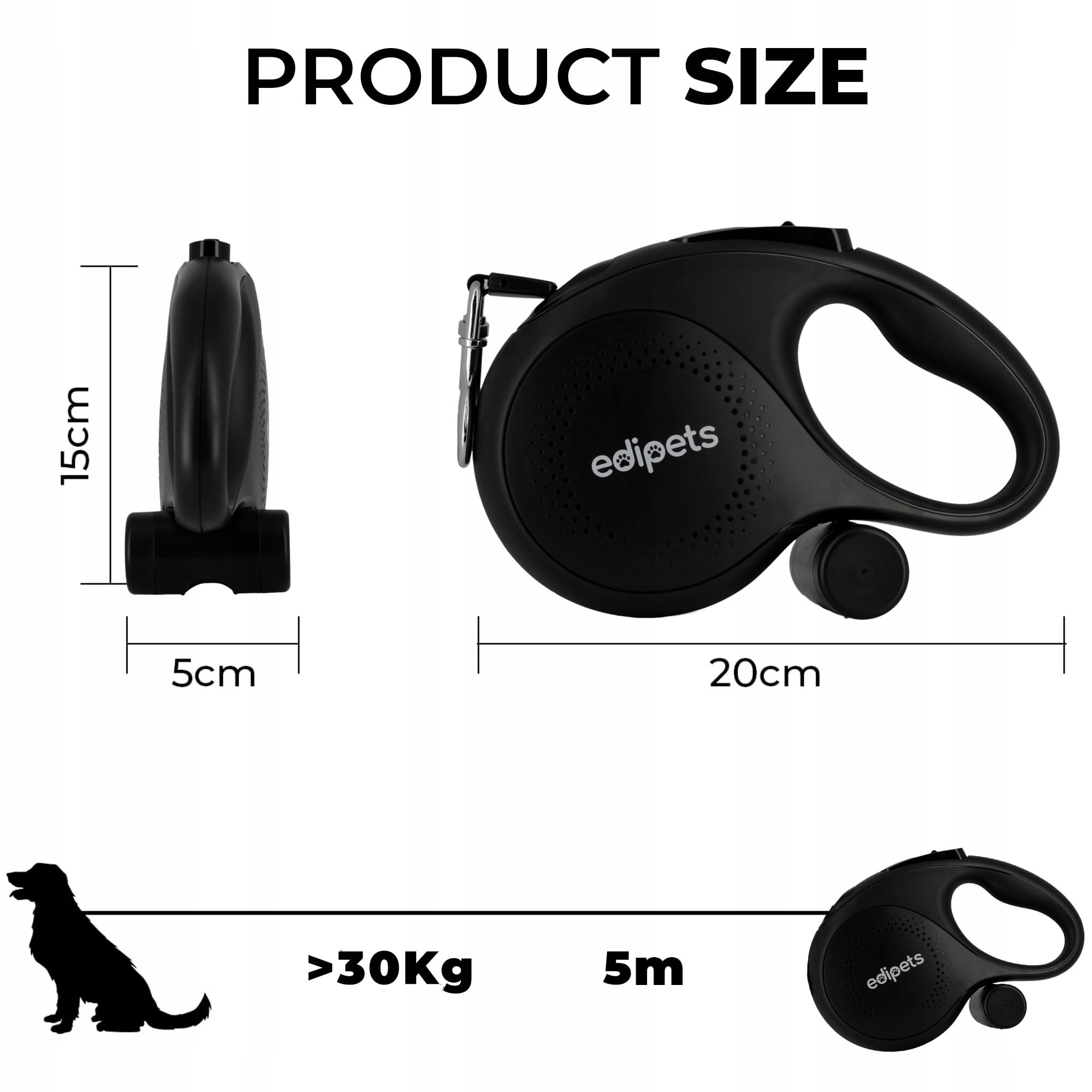 EDIPETS Smycz Dla Psów Rozciągliwa 5m Czarna | Premium Supply