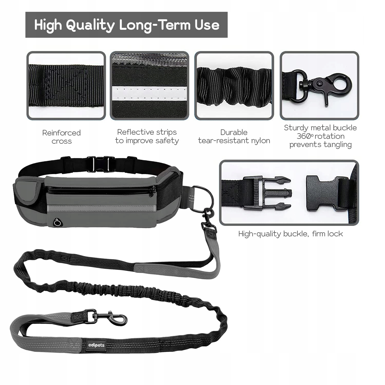 EDIPETS Smycz Do Biegania Dla Psów Ręce Wolne Odblaskowa 160-220 cm Szara | Premium Supply
