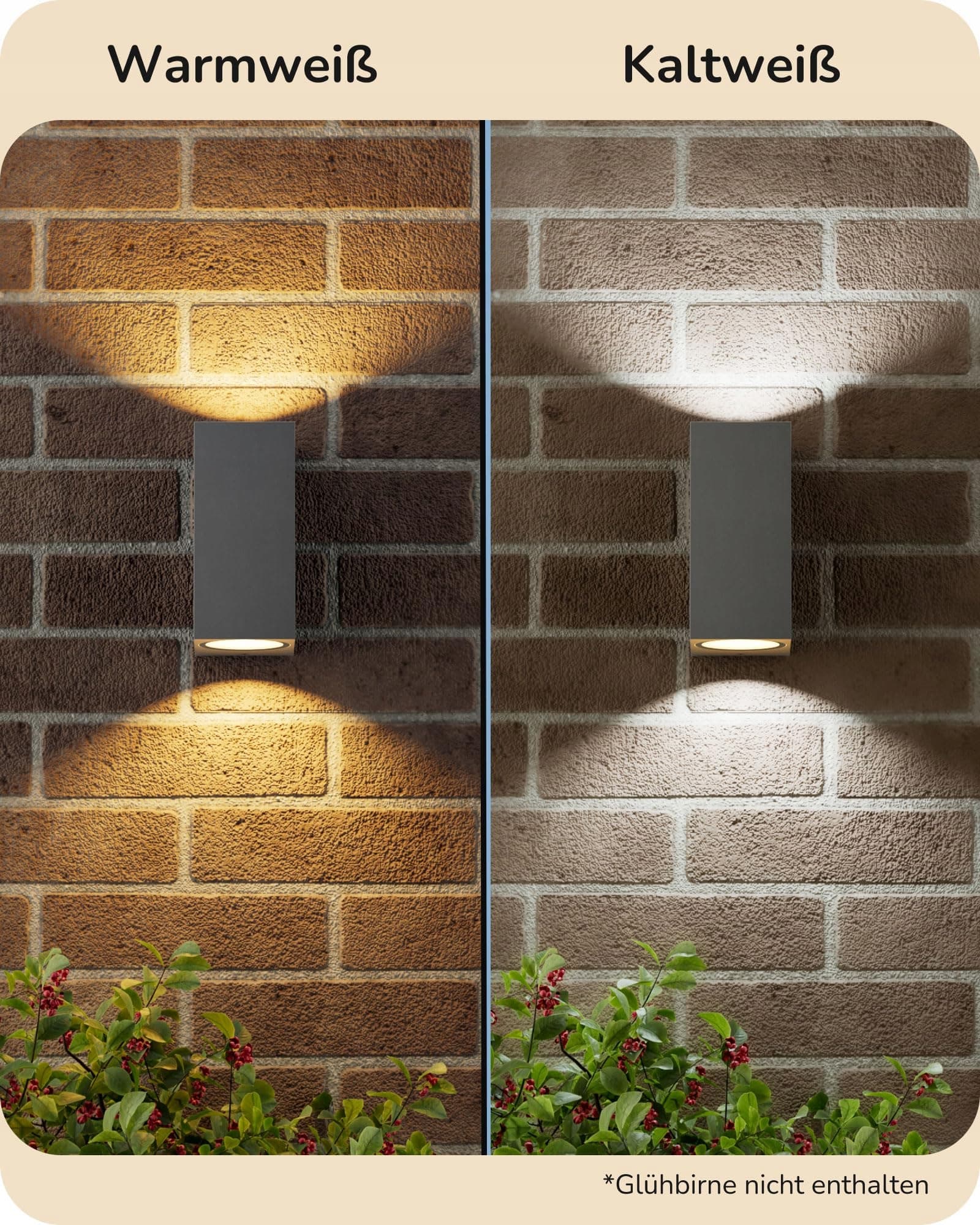 Wodoodporność IP44: zewnętrzny kinkiet o klasie ochrony IP44, idealny do wilgotnych pomieszczeń, takich jak łazienka, kuchnia, garaż lub przestrzenie zewnętrzne, takie jak tarasy, ogrody, balkony i elewacje, zapewnia niezawodne, długotrwałe oświetlenie.