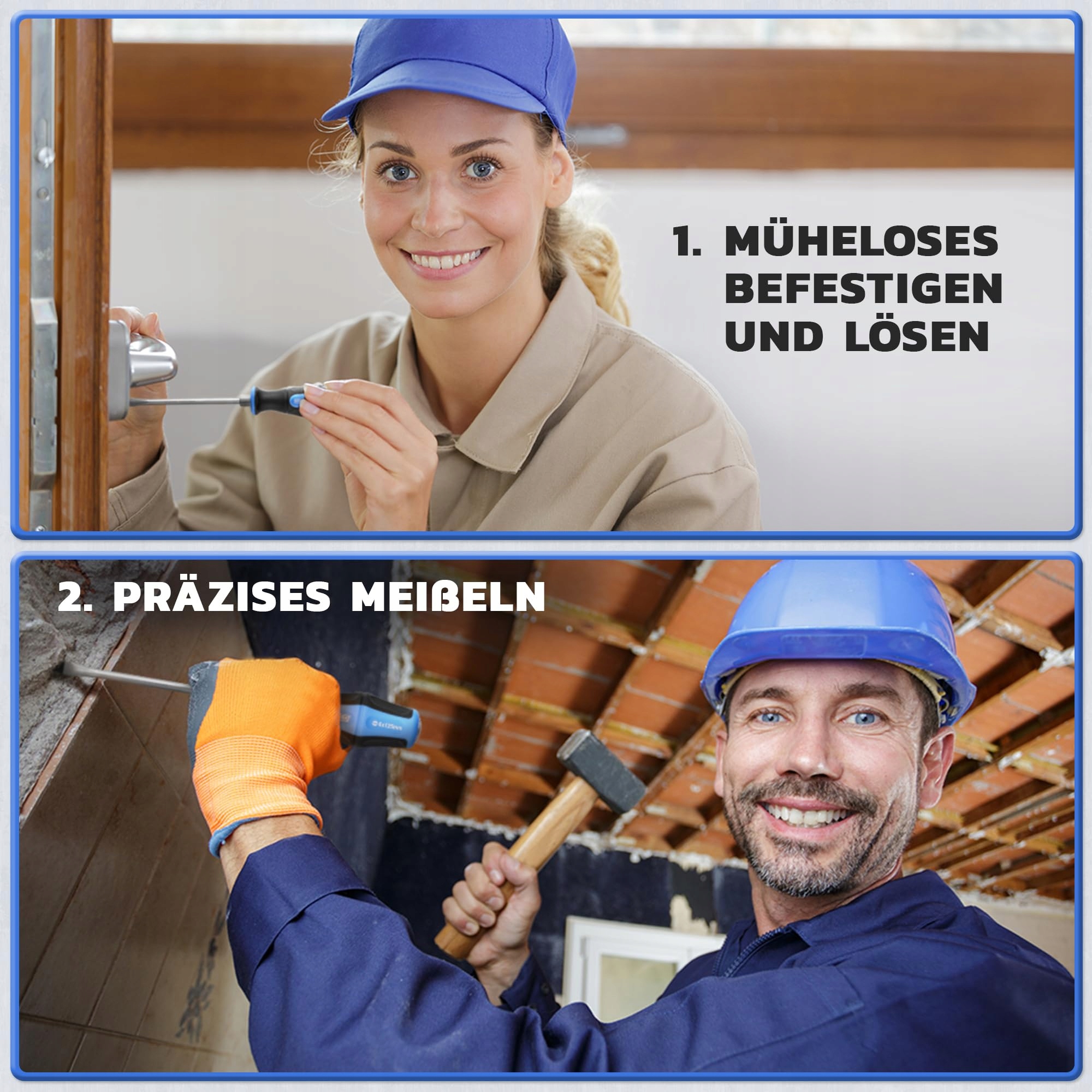 ERGONOMICZNE UCHWYTY – Antypoślizgowe uchwyty gumowe zapewniają optymalny komfort chwytu, dzięki czemu możesz pracować bez obciążania rąk; Uchwyty mają sześciokątny kształt, aby zapobiec ześlizgiwaniu się z nachylonych powierzchni
