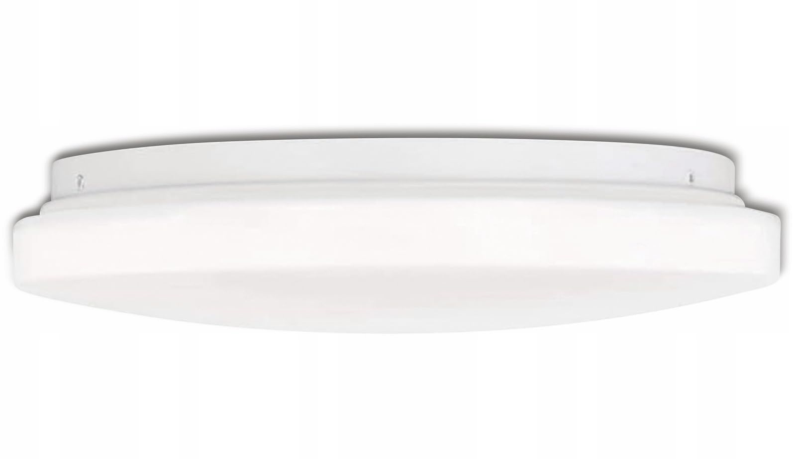 Okrągła lampa sufitowa LED ze stali i klosza z plastiku w białym kolorze szeroko i przyjemnie rozprasza światło w pomieszczeniu