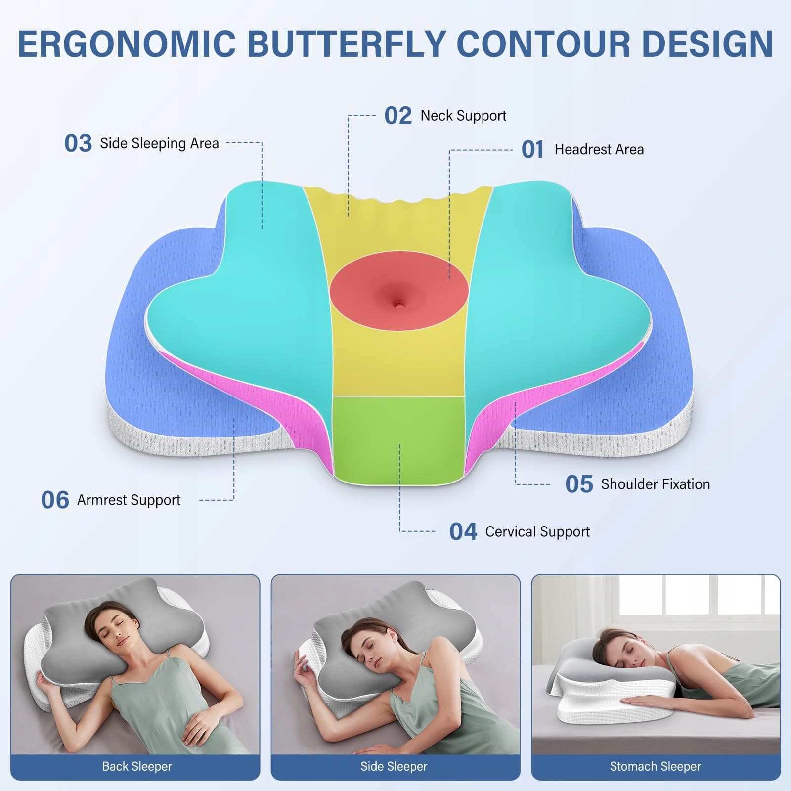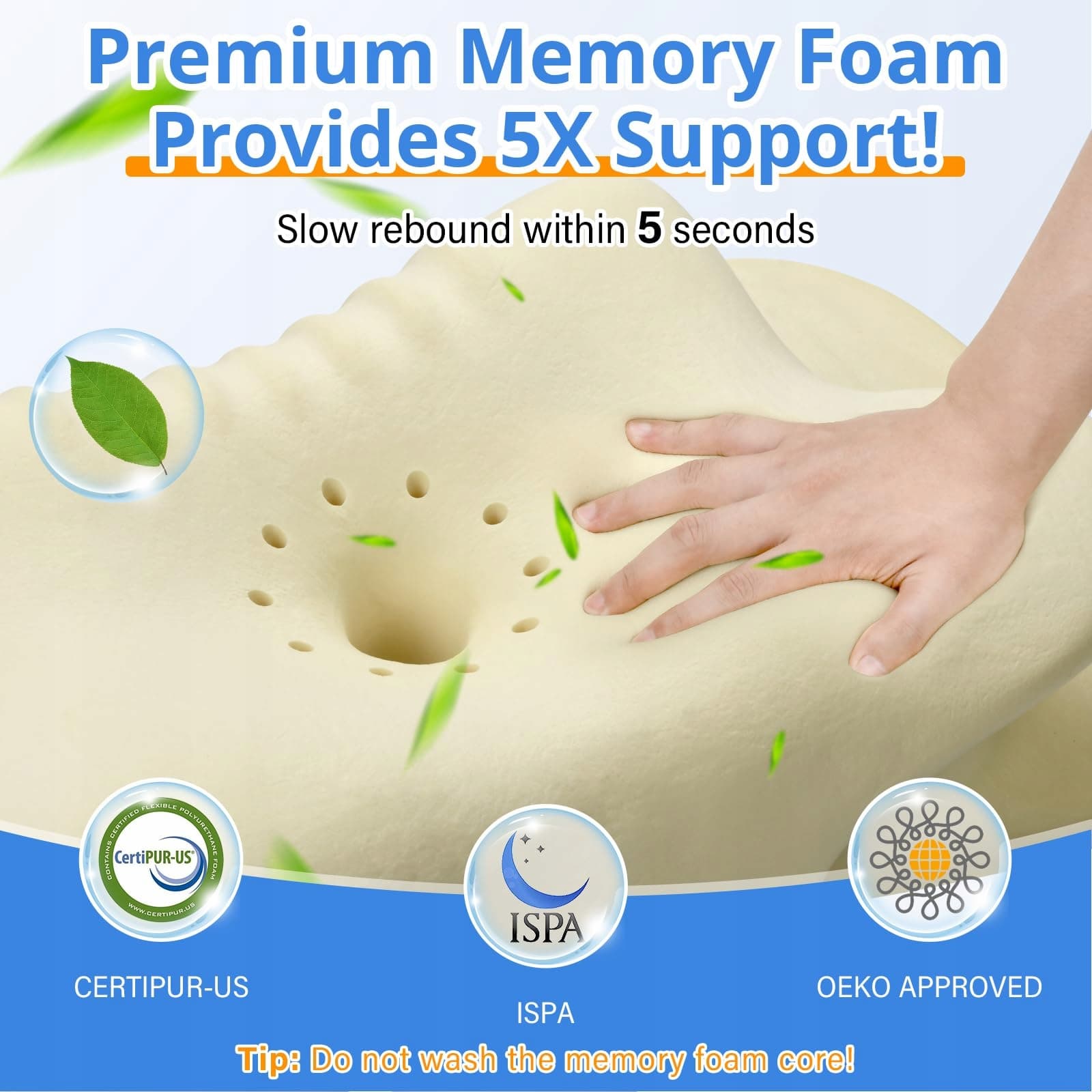 【Ekologiczna poduszka】Ta ergonomiczna poduszka na szyję wykonana z pianki memory foam certyfikowanej CertiPUR-US i Öko-Tex łączy naukę z ekologią. Jej profilowany kształt delikatnie i miękko podtrzymuje szyję. Gdy leżysz na plecach lub na boku, wysokiej jakości tekstura jest miękka, a jednocześnie wspierająca