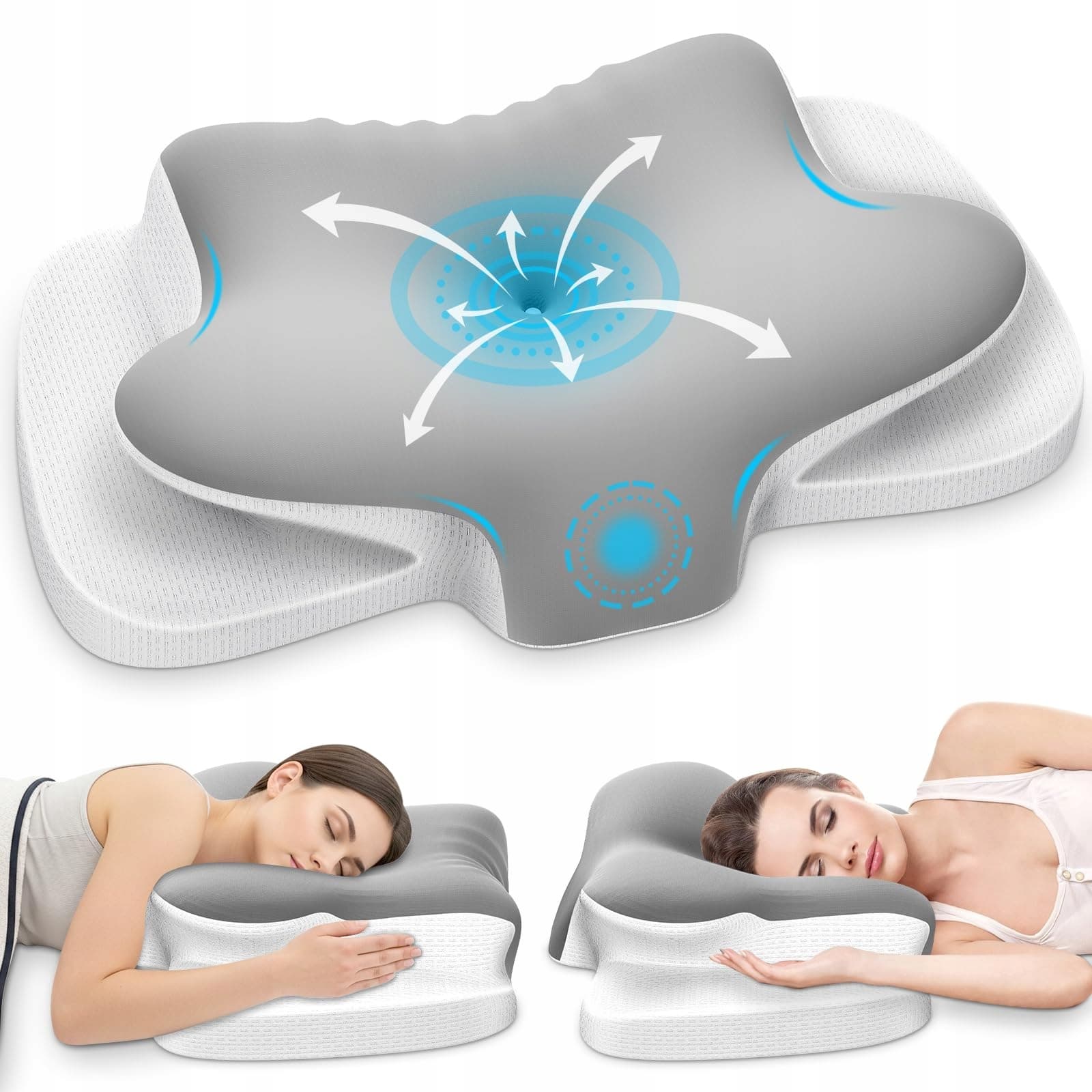 【Nowa ulepszona oddychająca poduszka na szyję】Nasze poduszki z pianki memory foam mają specjalne otwory wentylacyjne. Mikroskopijne kanały powietrzne skutecznie odprowadzają ciepło ciała i wilgoć. Zapobiega to poceniu się i przegrzewaniu, zapewniając przez cały czas chłodne i suche środowisko snu – idealne rozwiązanie dla osób, które łatwo się pocą lub mają skłonność do przegrzewania się w nocy