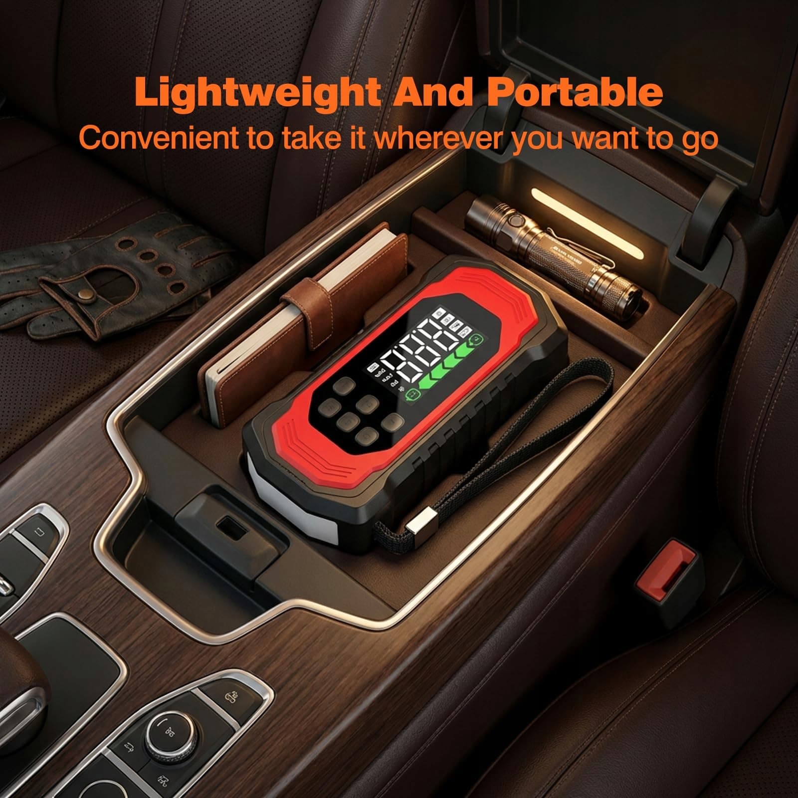 [9-w-1 wielofunkcyjna powerbank rozruchowa] Ta rozruchowa powerbank łączy 9 praktycznych funkcji: rozruch, pompowanie opon, dmuchawę, pompę próżniową, miernik ciśnienia w oponach, latarkę LED (światło stałe, stroboskop, SOS) oraz przenośną powerbankę.