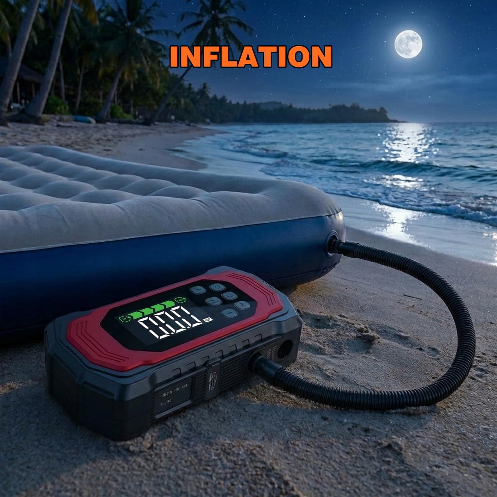 [Przenośna dmuchawa i pompa próżniowa] Dzięki dużemu wężowi i 4 dyszom powerbank rozruchowy bez wysiłku pompuje artykuły do basenów, materace powietrzne i łodzie. Przełącz się na tryb ssania, aby szybko opróżnić sprzęt outdoorowy lub worki próżniowe, oszczędzając miejsce w domu lub bagażu.