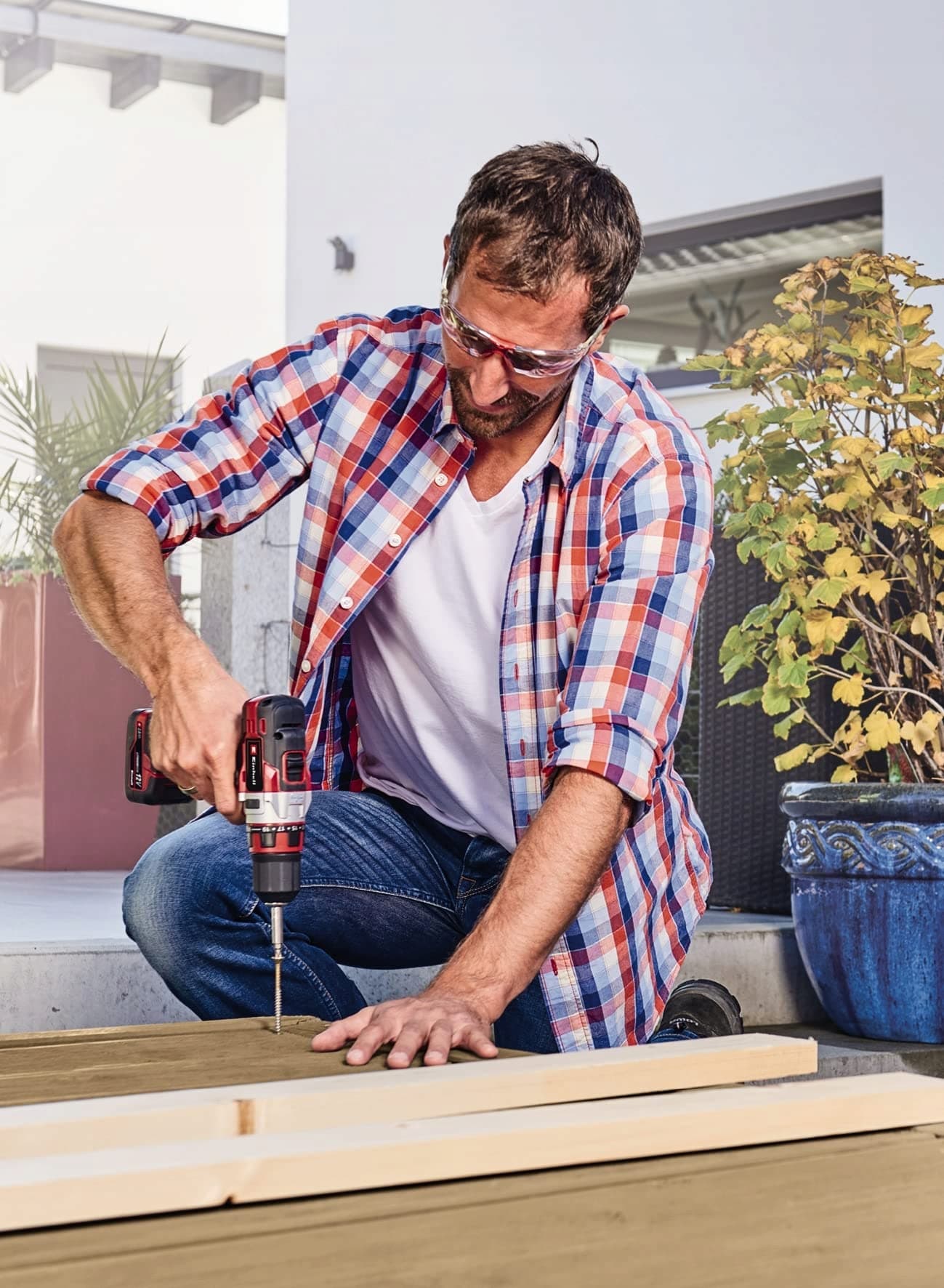 Sprzęgło przeciążeniowe - Przy potężnych pracach wiertarskich i wkrętarskich sprzęgło przeciążeniowe zapobiega przekręceniu śrub.
