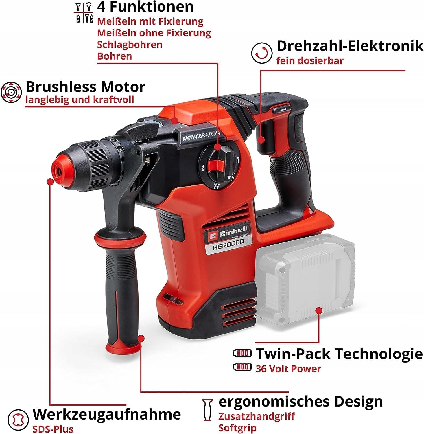 Einhell młotowiertarka akumulatorowa Herocco 36/28 Power X-Change (Twin-Pack, wiercenie/udarowe wiercenie/dłutowanie z/bez blokady, 3,2 Joule, bezszczotkowy, SDS+, w tym E-Box, bez akumulatora/ładowarki)