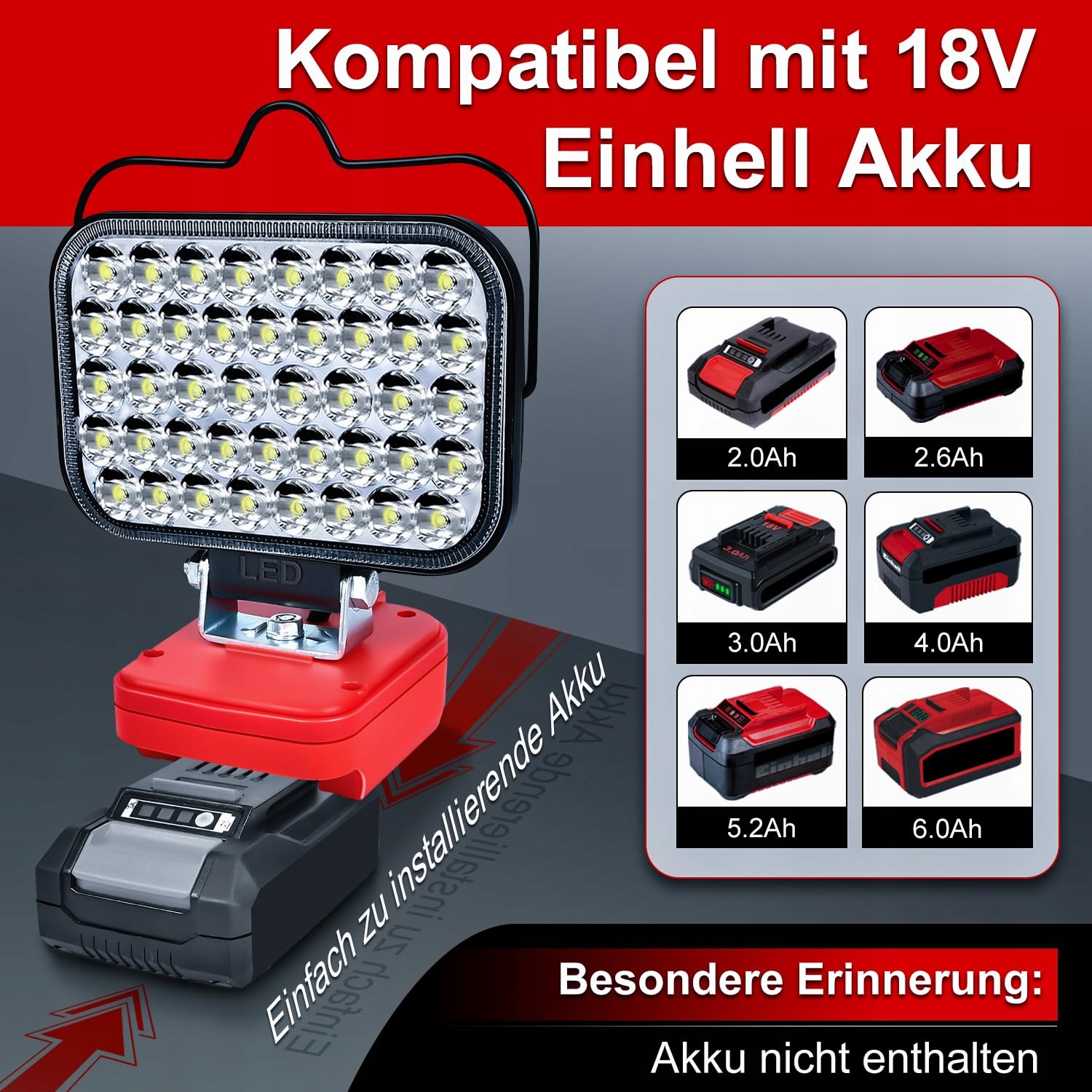 【Kompatybilna z bateriami】 Ta kompaktowa, wielofunkcyjna lampa LED na akumulator jest kompatybilna z baterią 18V 2,0–6,0 Ah, odpowiednia dla wszystkich Power. Może być również używana jako reflektor do oświetlenia miejsca pracy lub lokalnego oświetlenia w warsztacie na placu budowy. (Bateria nie jest dołączona)
