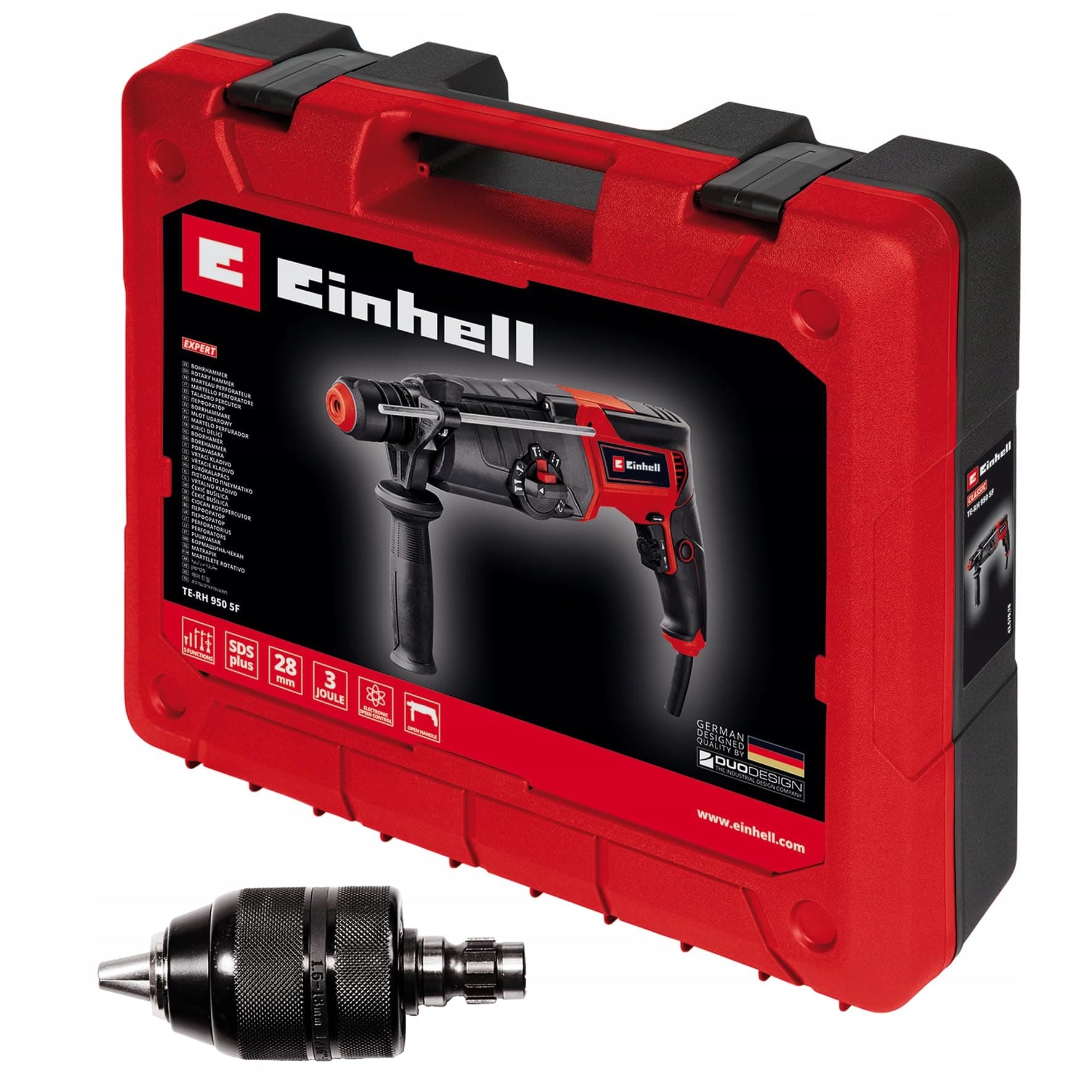 Młotowiertarka Einhell TE-RH 950 5F (950 W, 2-biegowa przekładnia, siła udaru 3 J, uchwyt SDS-plus, zdolność wiercenia w betonie 28 mm, ogranicznik głębokości wiercenia, dostarczana w walizce)
