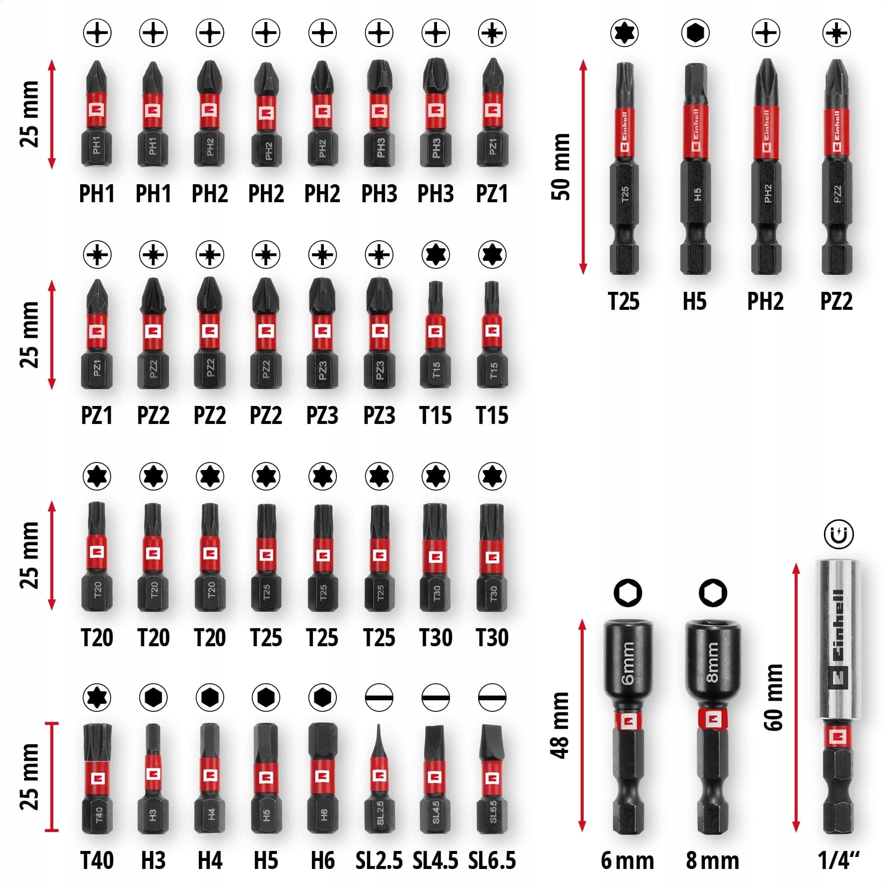 EINHELL Zestaw Bitów Udarowych 39 Elementów 25mm 50mm Zestaw Nasadek