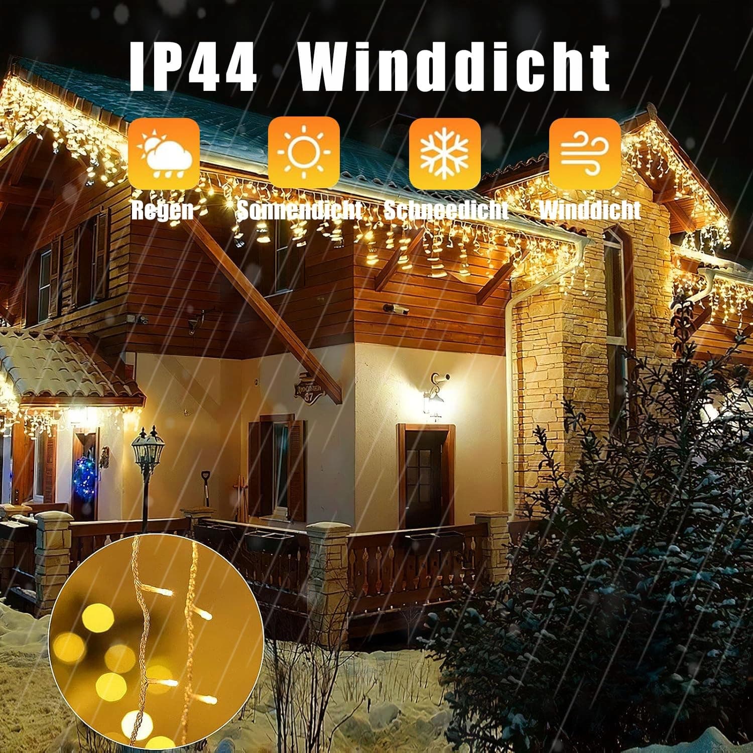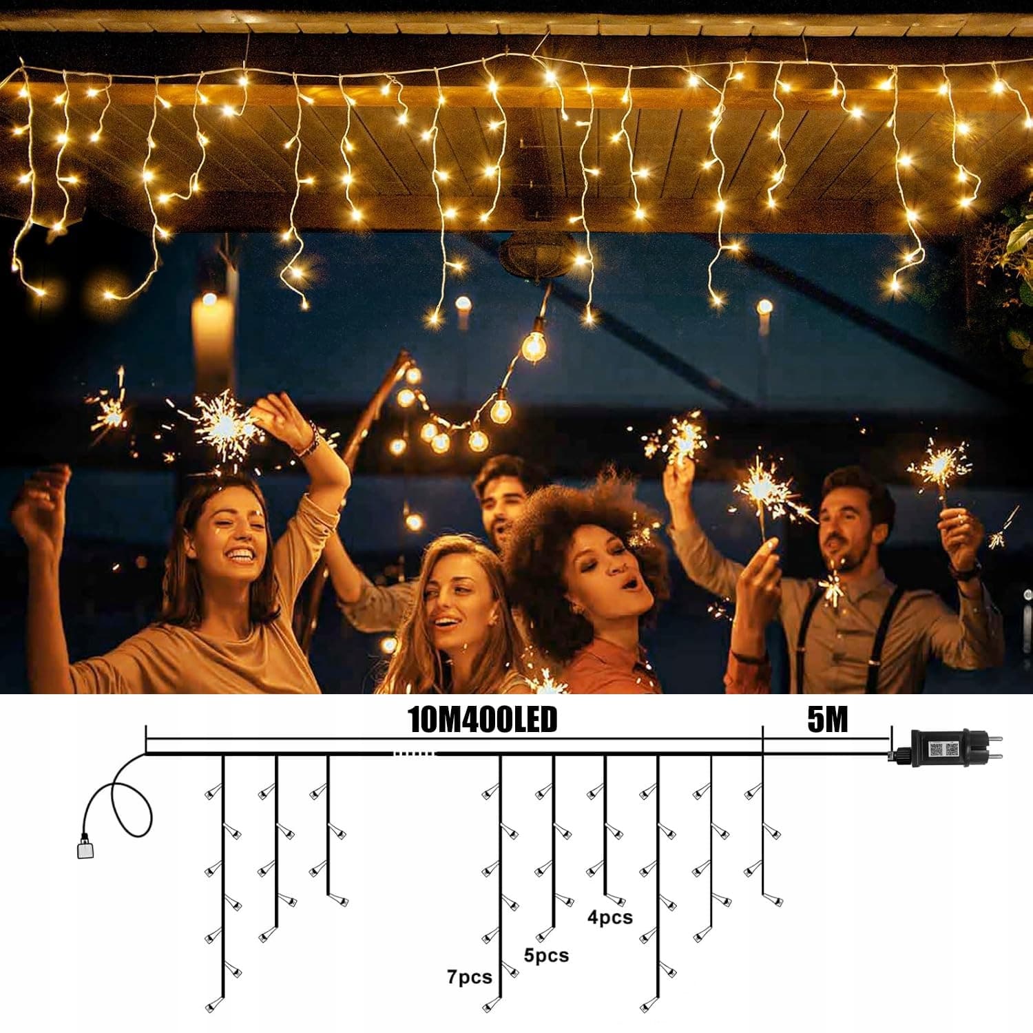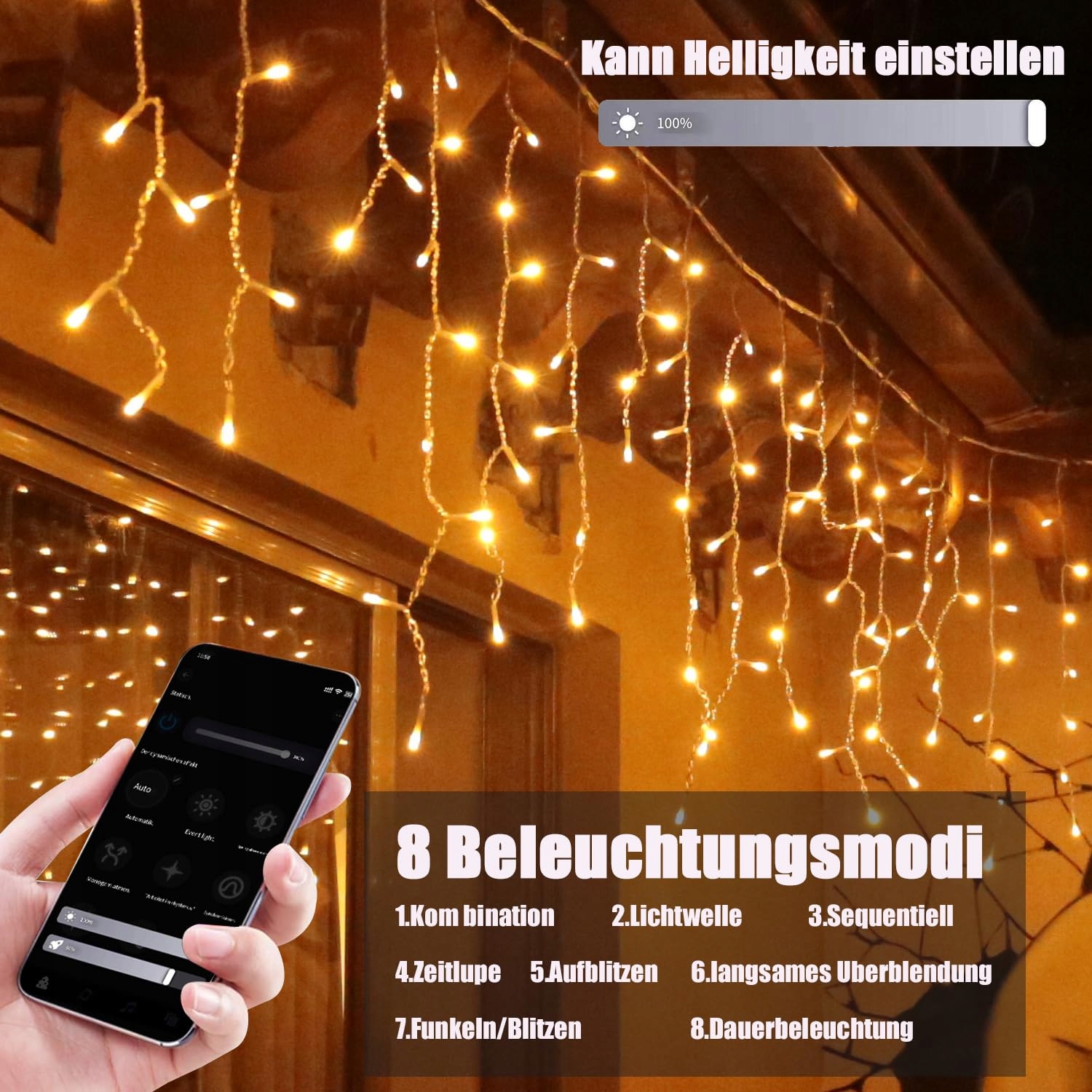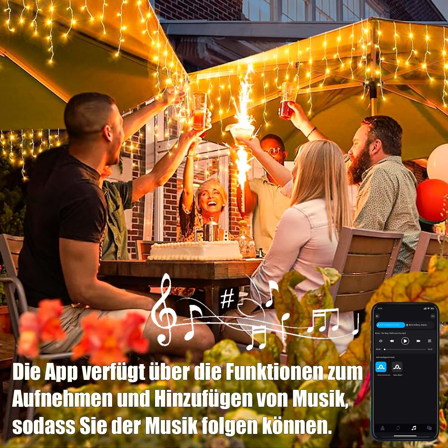 Girlanda świetlna Eisregen z sterowaniem przez aplikację, 10m 400 diod LED, kurtyna świetlna z rytmem muzycznym, timer, wodoodporna IP44, 8 trybów do sypialni, ślubu, Bożego Narodzenia, imprezy, Halloween, dekoracji ogrodowych