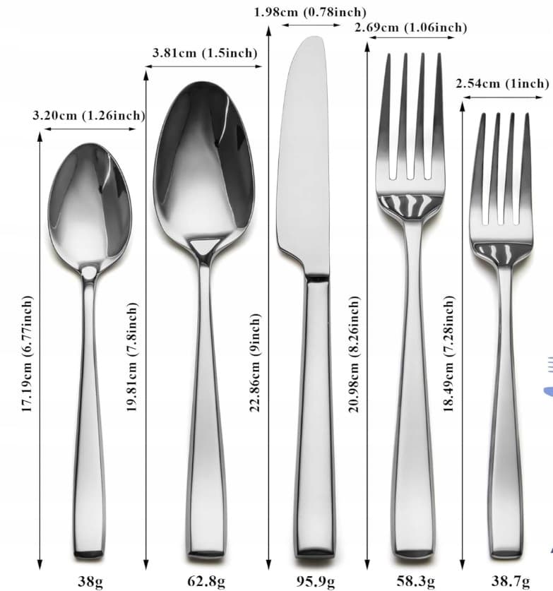 【Zestaw sztućców dla 4 osób】Ten 20-częściowy zestaw sztućców zawiera 4 noże do obiadu, 4 widelce do obiadu, 4 widelce do deseru, 4 łyżki do obiadu, 4 łyżeczki do kawy, jest niezbędny dla rodzin lub restauracji. Zestaw jest również niezastąpionym zestawem sztućców, zarówno do codziennego użytku, jak i do przygotowywania kolacji lub przyjęć
