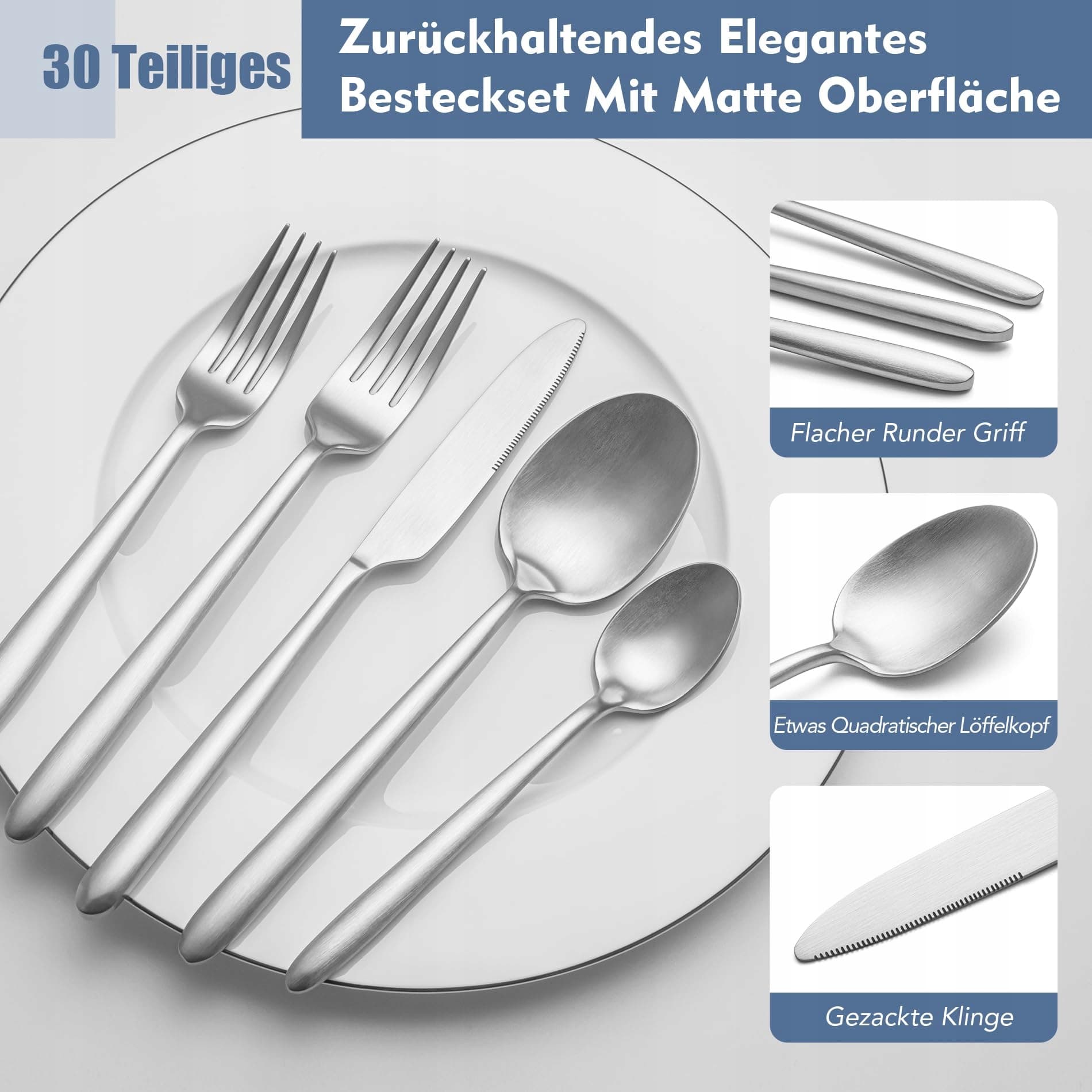 EIUBUIE Zestaw Sztućców 30 Części Stal Nierdzewna Matowa Na 6 Osób