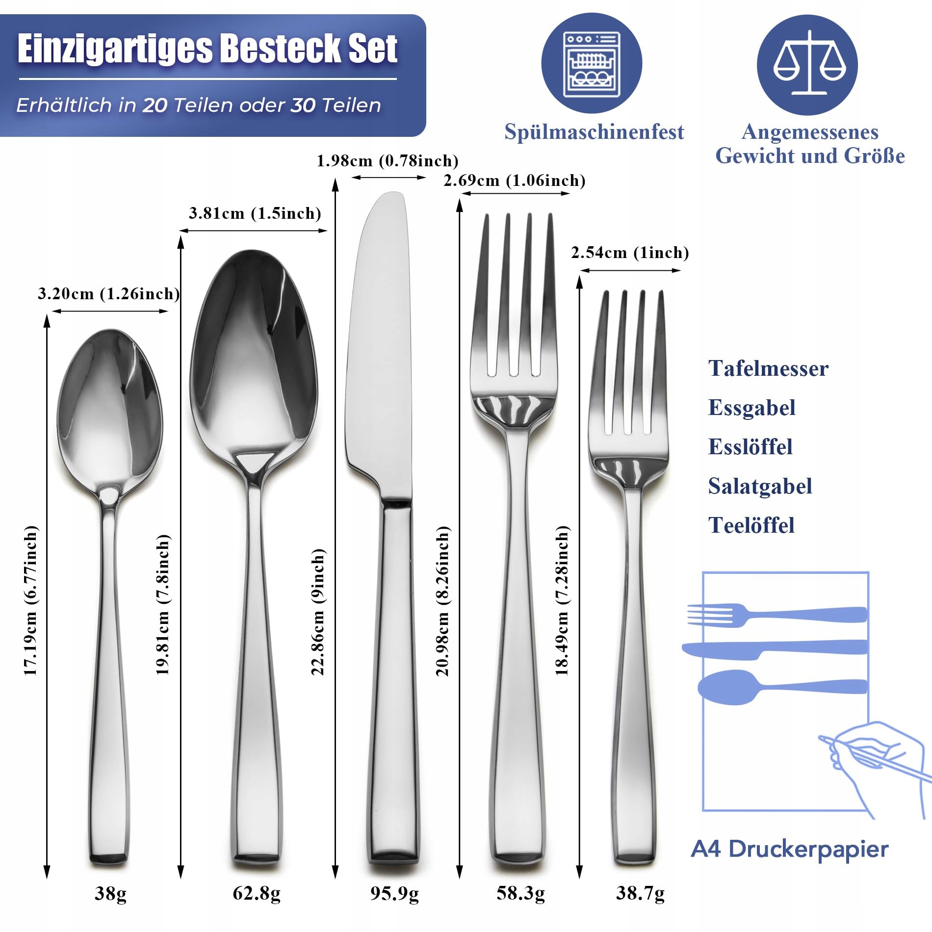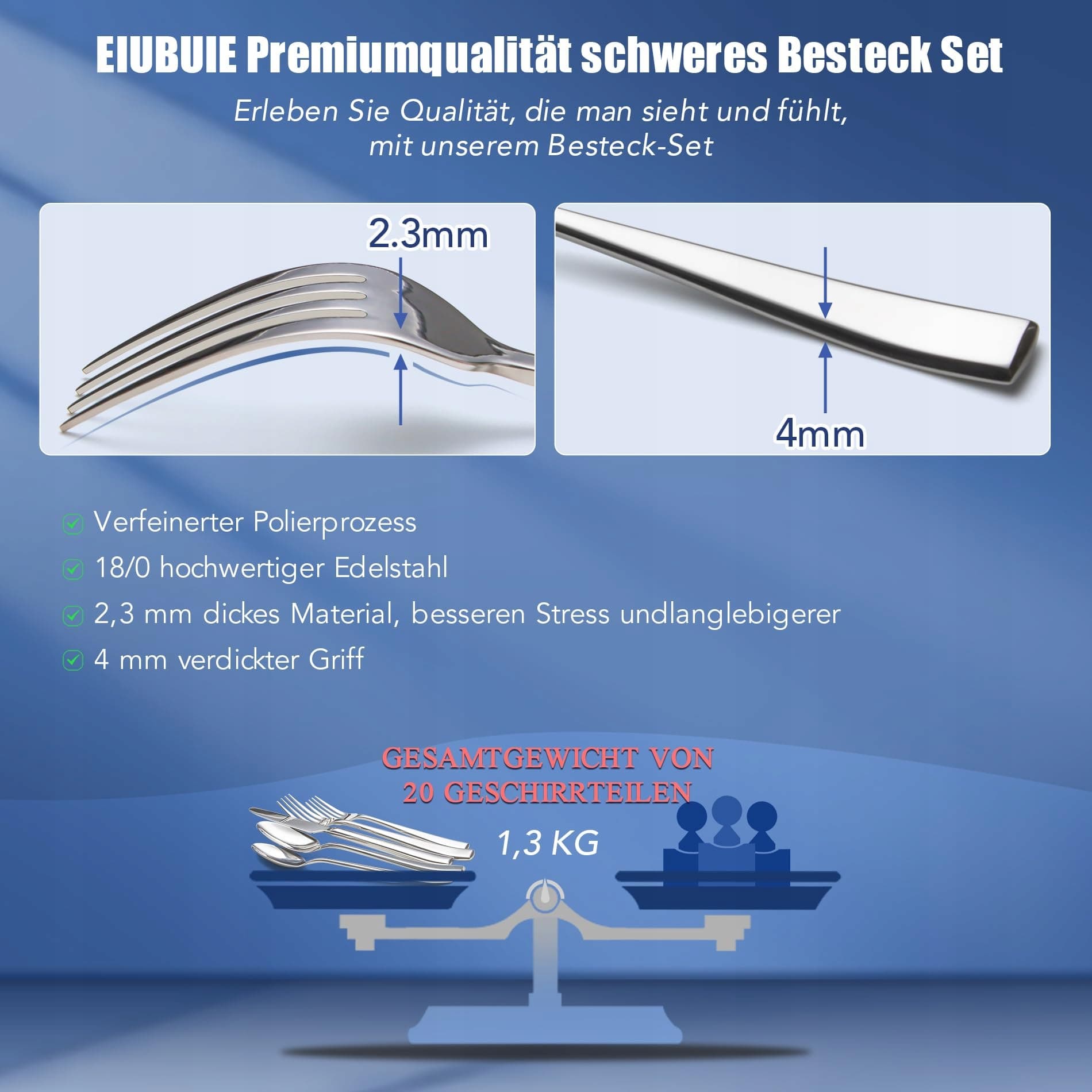 EIUBUIE Zestaw Sztućców 30 Części Stal Nierdzewna Nowoczesny Design