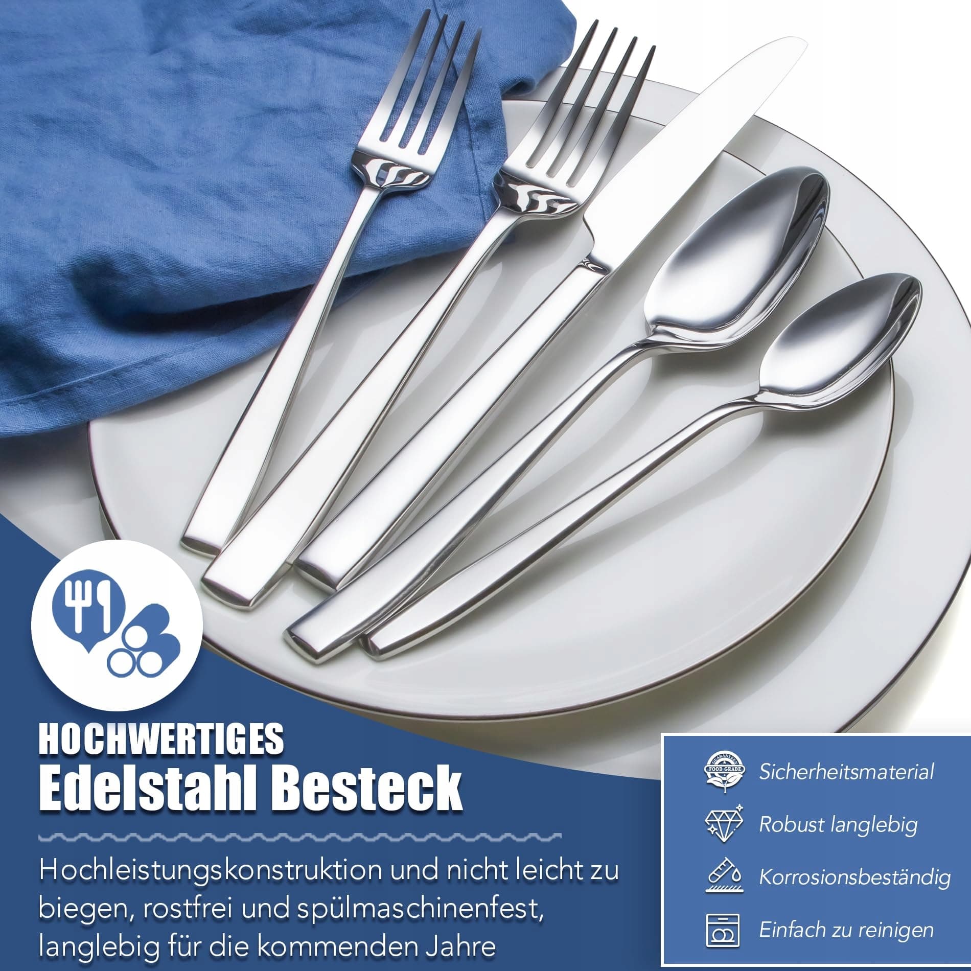 EIUBUIE Zestaw Sztućców 30 Części Stal Nierdzewna Nowoczesny Design | Premium Supply