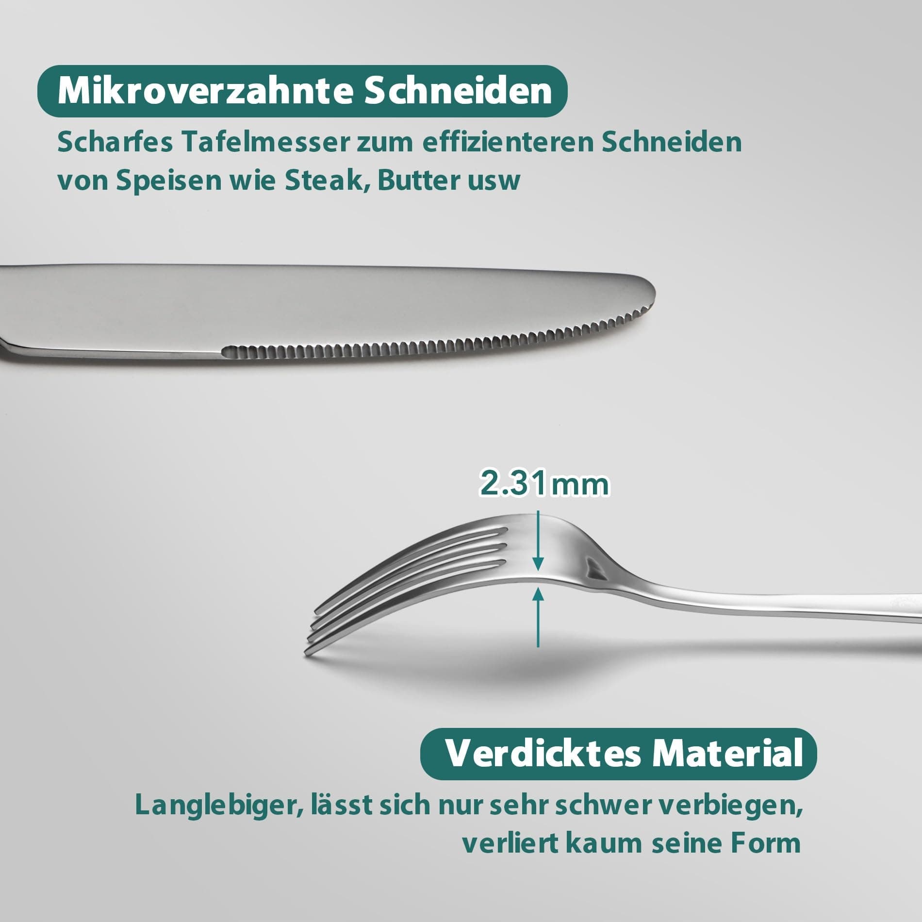 【Wysokiej jakości stal nierdzewna i nadaje się do mycia w zmywarce】Ten zestaw sztućców wykonany jest z wysokiej jakości, bezpiecznej dla żywności stali nierdzewnej, wolnej od BPA, odpornej na rdzę i korozję, nietoksycznej oraz wolnej od niklu. Trwała konstrukcja i gruby materiał zapewniają, że te sztućce będą służyć przez długi czas bez obaw. Nadaje się również do mycia w zmywarce, co oszczędza czas i wysiłek