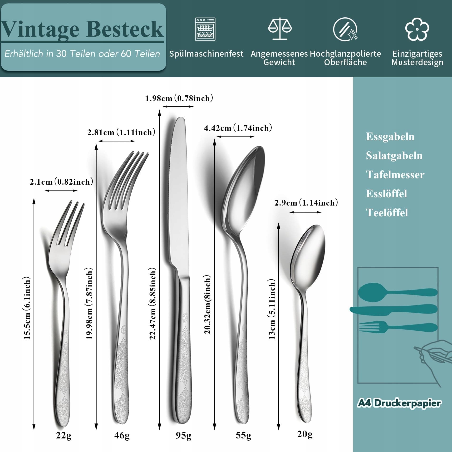 EIUBUIE Zestaw Sztućców 30 Elementów Stal Nierdzewna Wzór Unikalny