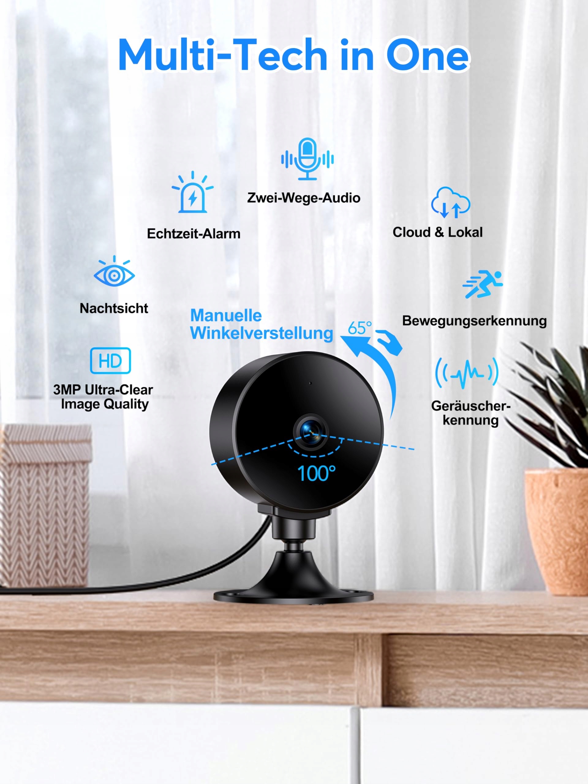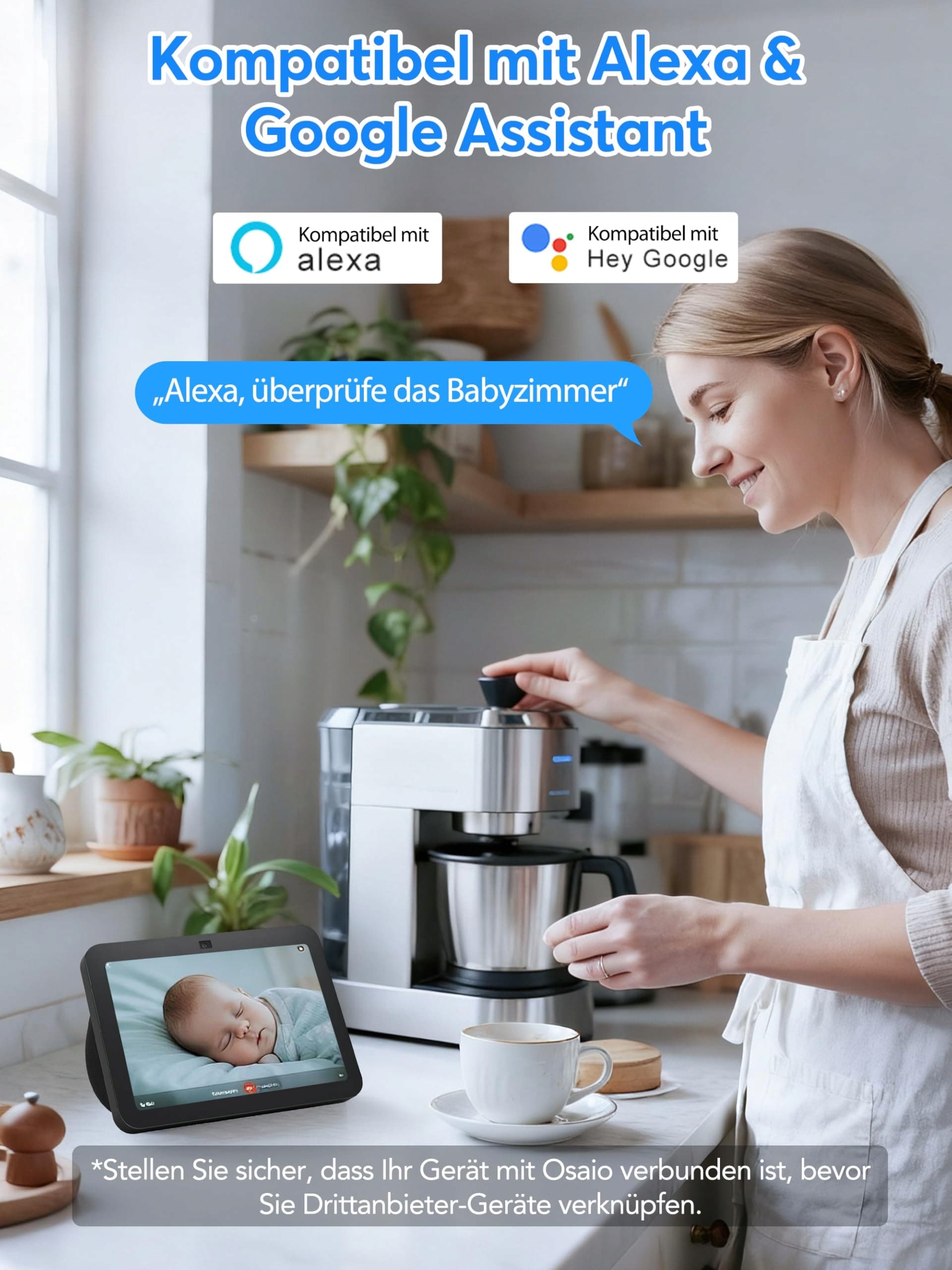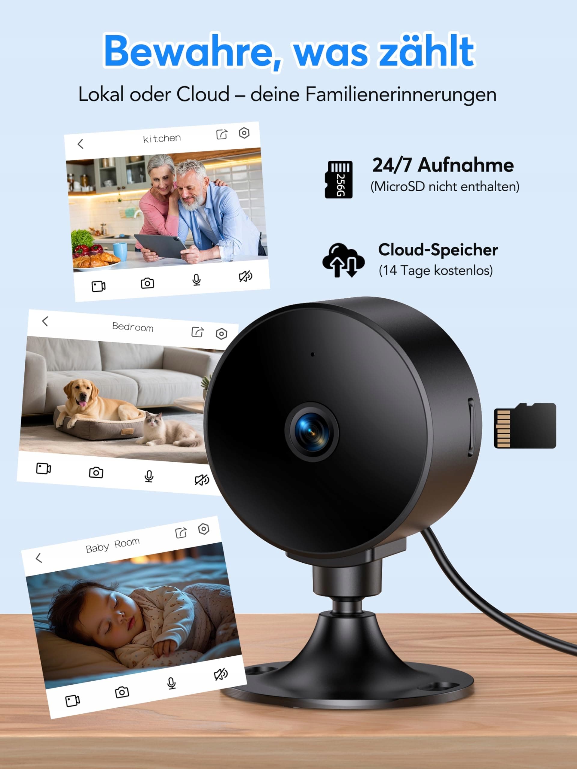 Elastyczne opcje przechowywania i łatwe sterowanie aplikacją: Kamera WLAN obsługuje karty microSD do 256 GB (brak w zestawie) oraz przechowywanie w chmurze z 14-dniowym okresem próbnym. Działa wyłącznie z siecią WLAN 2,4 GHz i jest kompatybilna z Alexa oraz Google Assistant. Do konfiguracji i sterowania kamerą wymagana jest aplikacja Osiao.