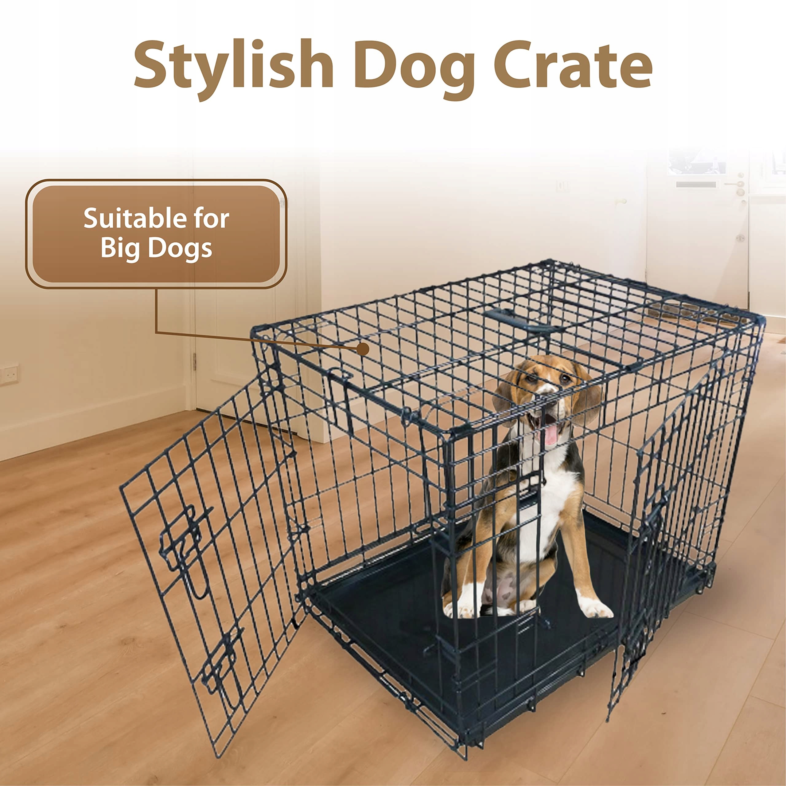 Bezpieczna klatka dla psa z 2 drzwiami: Każda klatka dla psa ma dwa wejścia. Wejścia są również wyposażone w wytrzymałe zasuwki. Nie musisz się więc martwić, że otworzą się niespodziewanie.