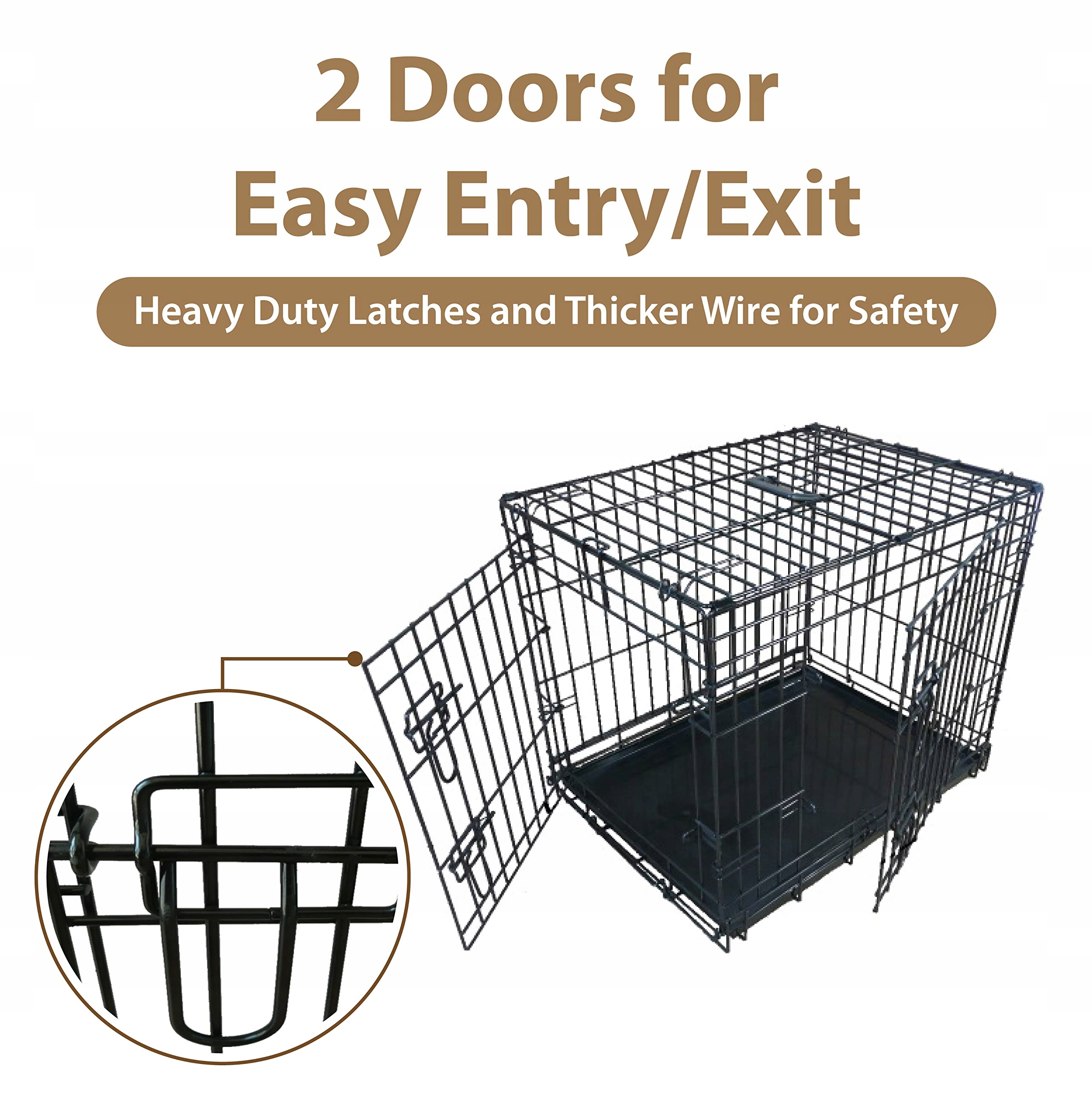Bezpieczna klatka dla psa z 2 drzwiami: Każda klatka dla psa ma dwa wejścia dla psa. Wejścia są również wyposażone w wytrzymałe zasuwki. Nie musisz się więc martwić, że otworzą się niespodziewanie.