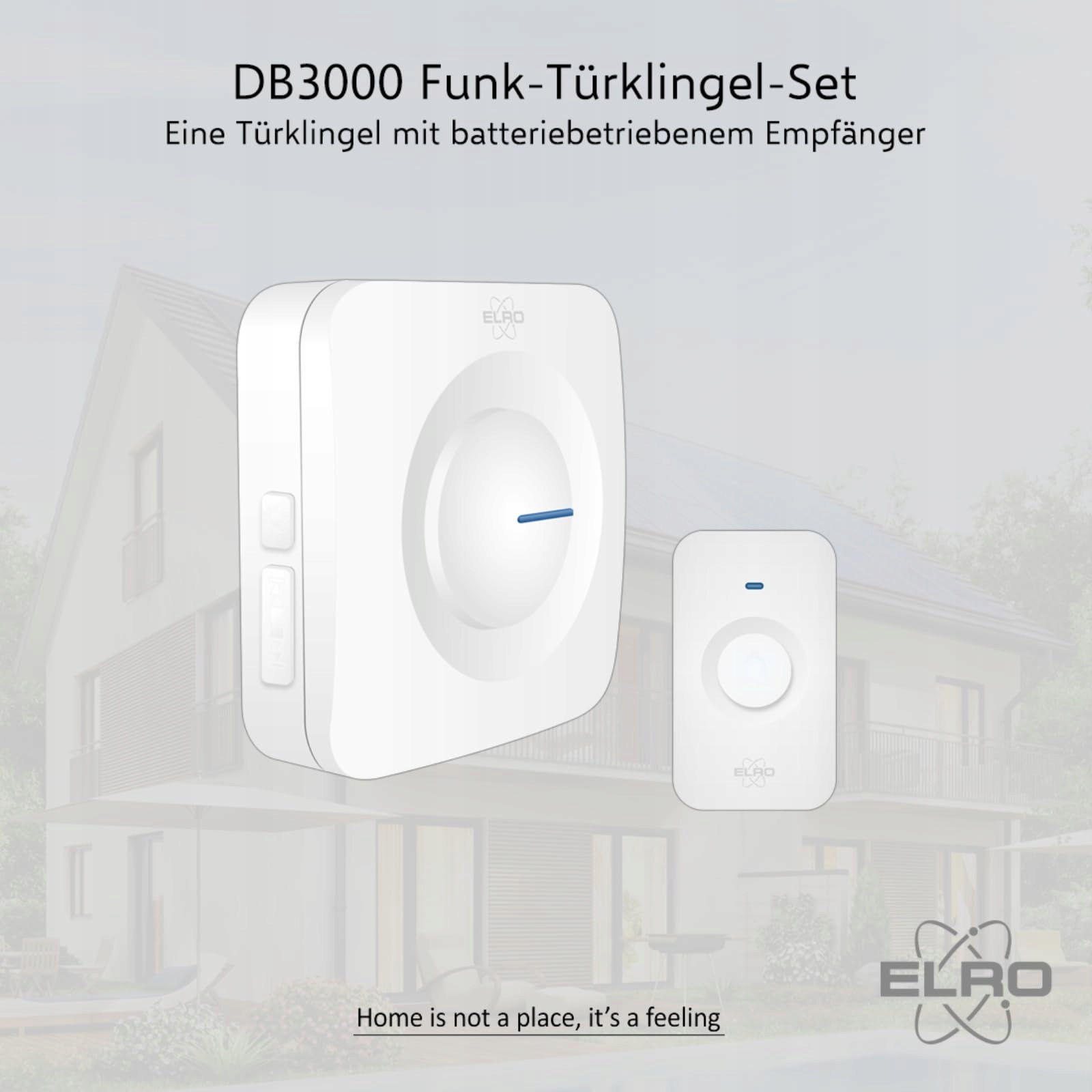 ELRO DB3000 Zestaw dzwonków bezprzewodowych Przenośny odbiornik z baterią-Wodoodporny, zasięg 300m, 64 melodie-Biały