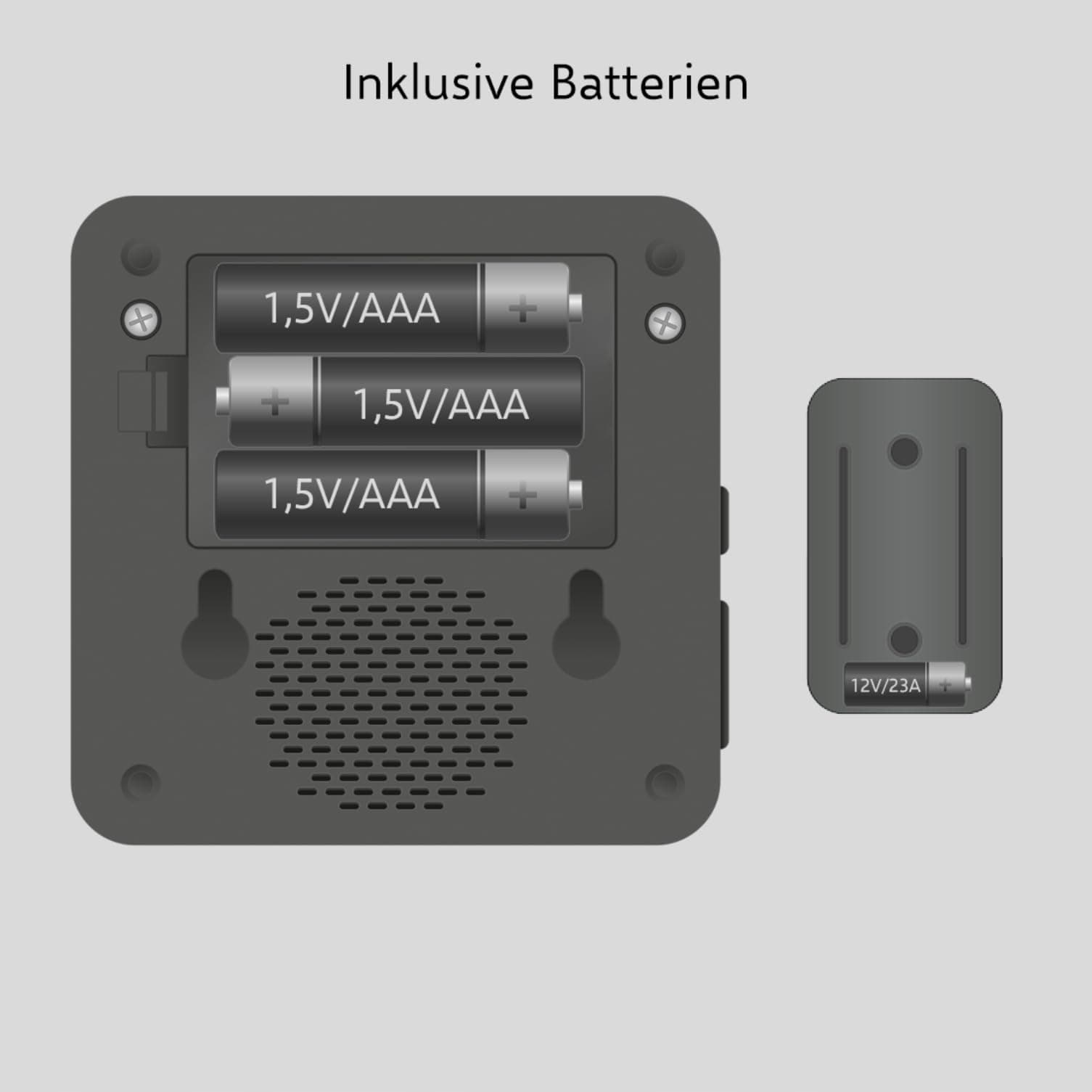 Kompletny zestaw dzwonkowy z dwoma odbiornikami zasilanymi bateriami, dzięki czemu można go umieścić wszędzie, gdzie się chce