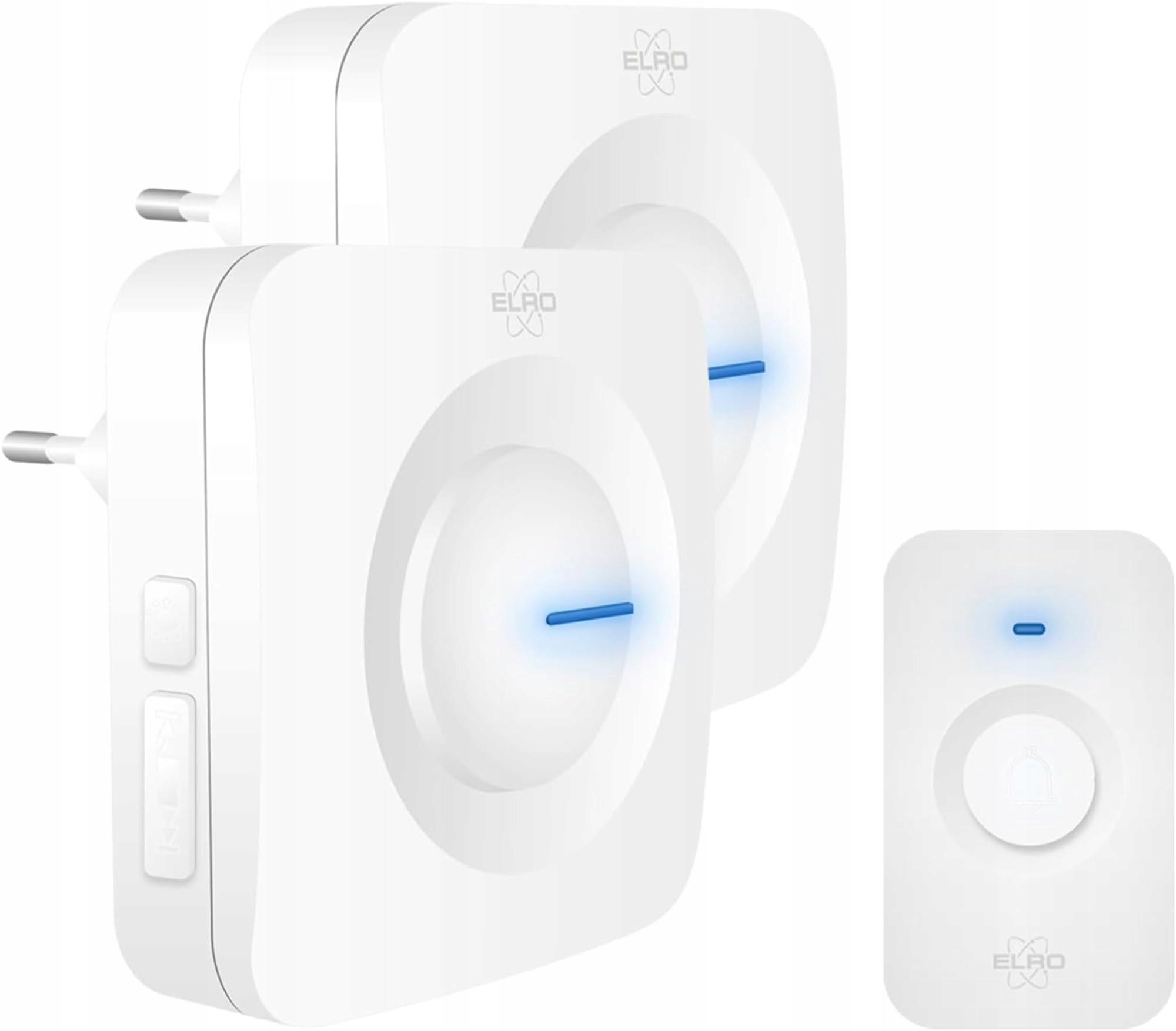 Kompletny zestaw dzwonków do drzwi z dwoma odbiornikami z wtyczką, dzięki czemu można podłączyć jednostkę wewnętrzną i nigdy nie trzeba wymieniać baterii