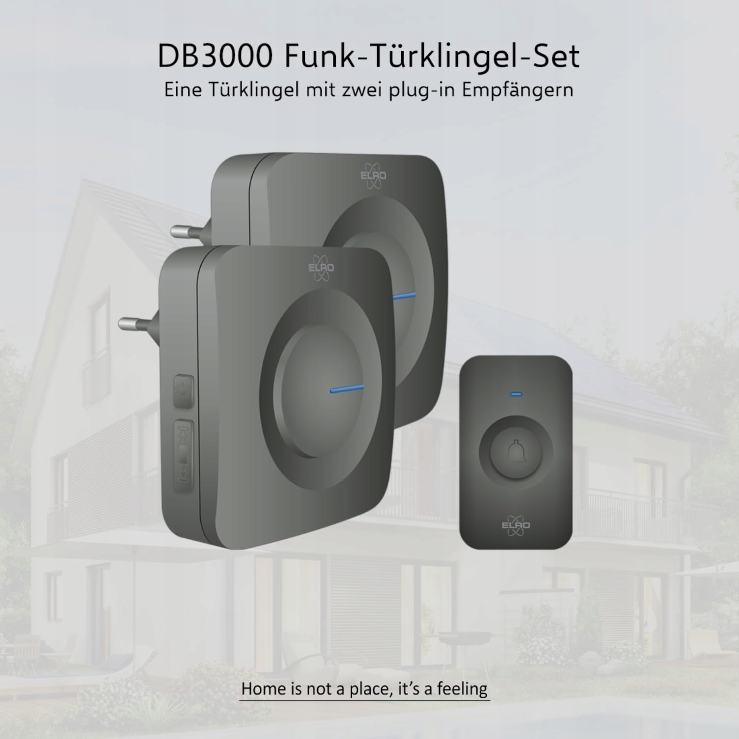 ELRO DB3000 Zestaw dzwonków bezprzewodowych 2X Odbiornik do gniazdka-Wodoodporny, zasięg 300m, 64 melodie-Czarny, Plug-In/Wtyczka