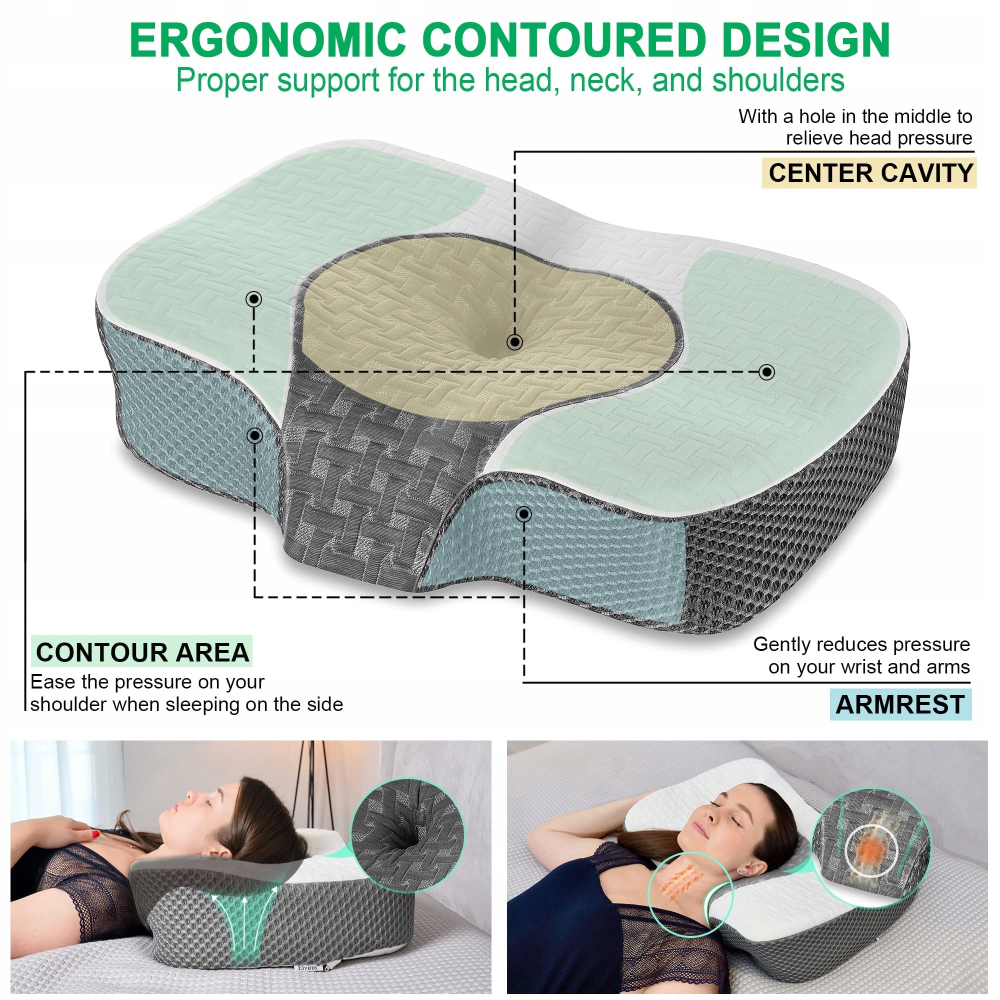 Elviros ortopedyczna poduszka z pianki memory, poduszka na ból szyi, poduszka do spania, ergonomiczne podparcie szyi, poduszka podtrzymująca szyję, poduszka antychrapaniowa dla śpiących na boku, śpiących na brzuchu, biała