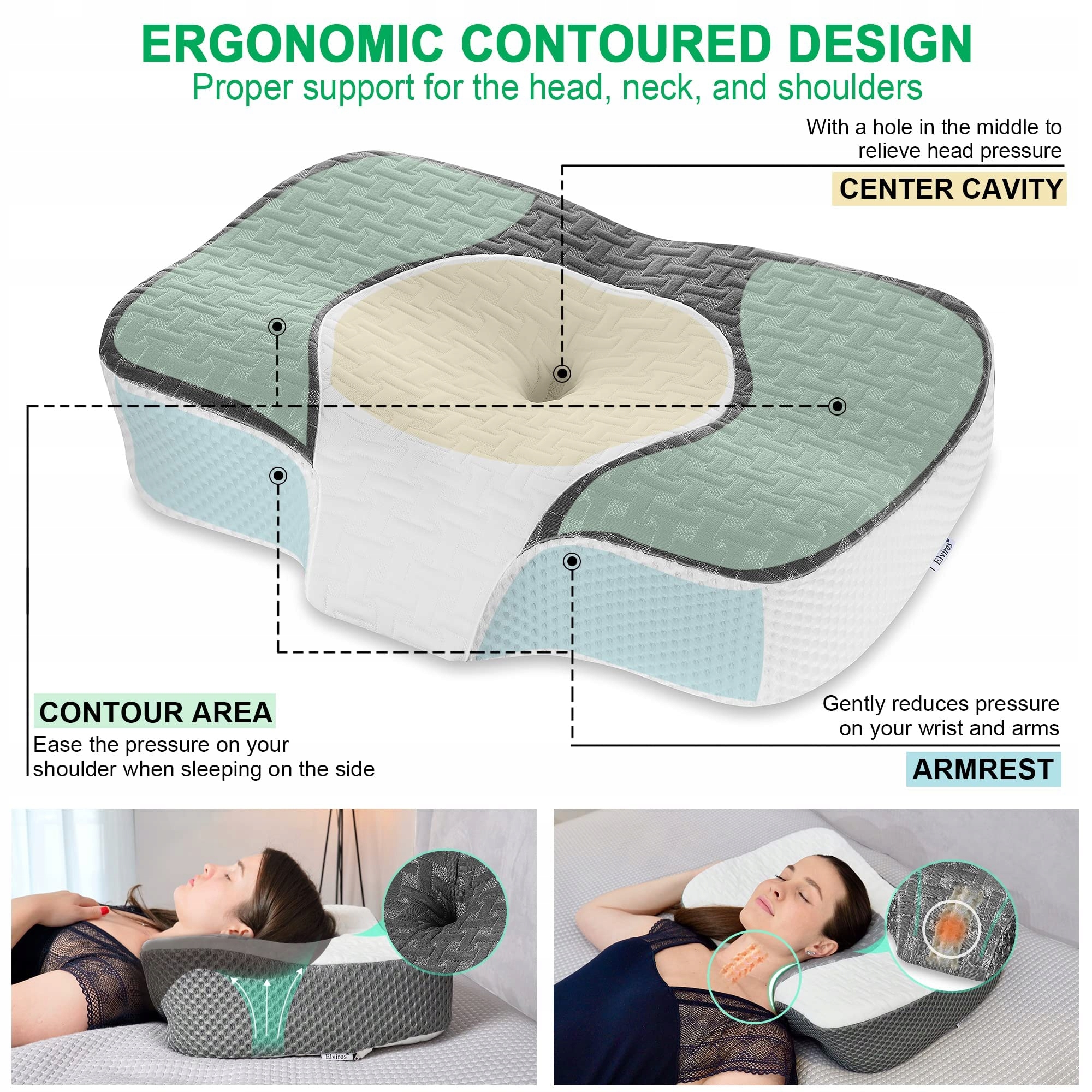 Poduszka ortopedyczna Elviros z pianki memory, poduszka na ból szyi, poduszka do spania, ergonomiczne podparcie szyi, poduszka podpierająca szyję na ból ramion, poduszka antychrapaniowa dla śpiących na boku
