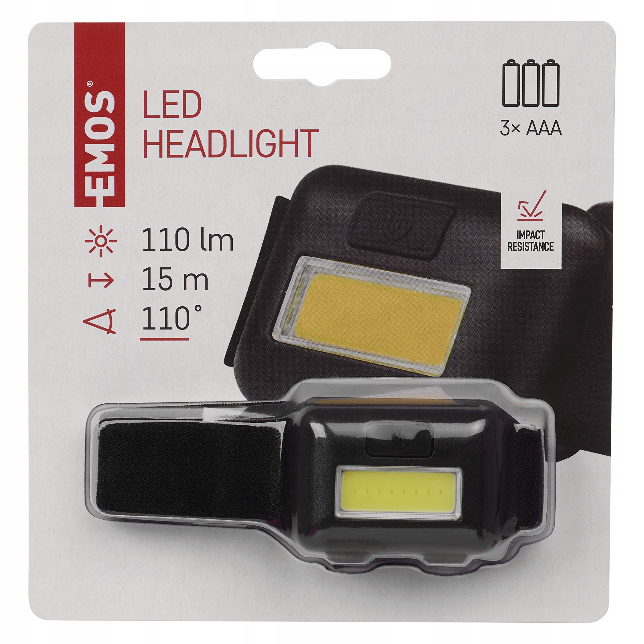 EMOS Mini czołówka dla dzieci z czasem świecenia 40 godz., czołówka COB LED o jasności 110 lm, zasięg światła 15 m i 3 trybami światła, odporna na wstrząsy, zasilana bateriami