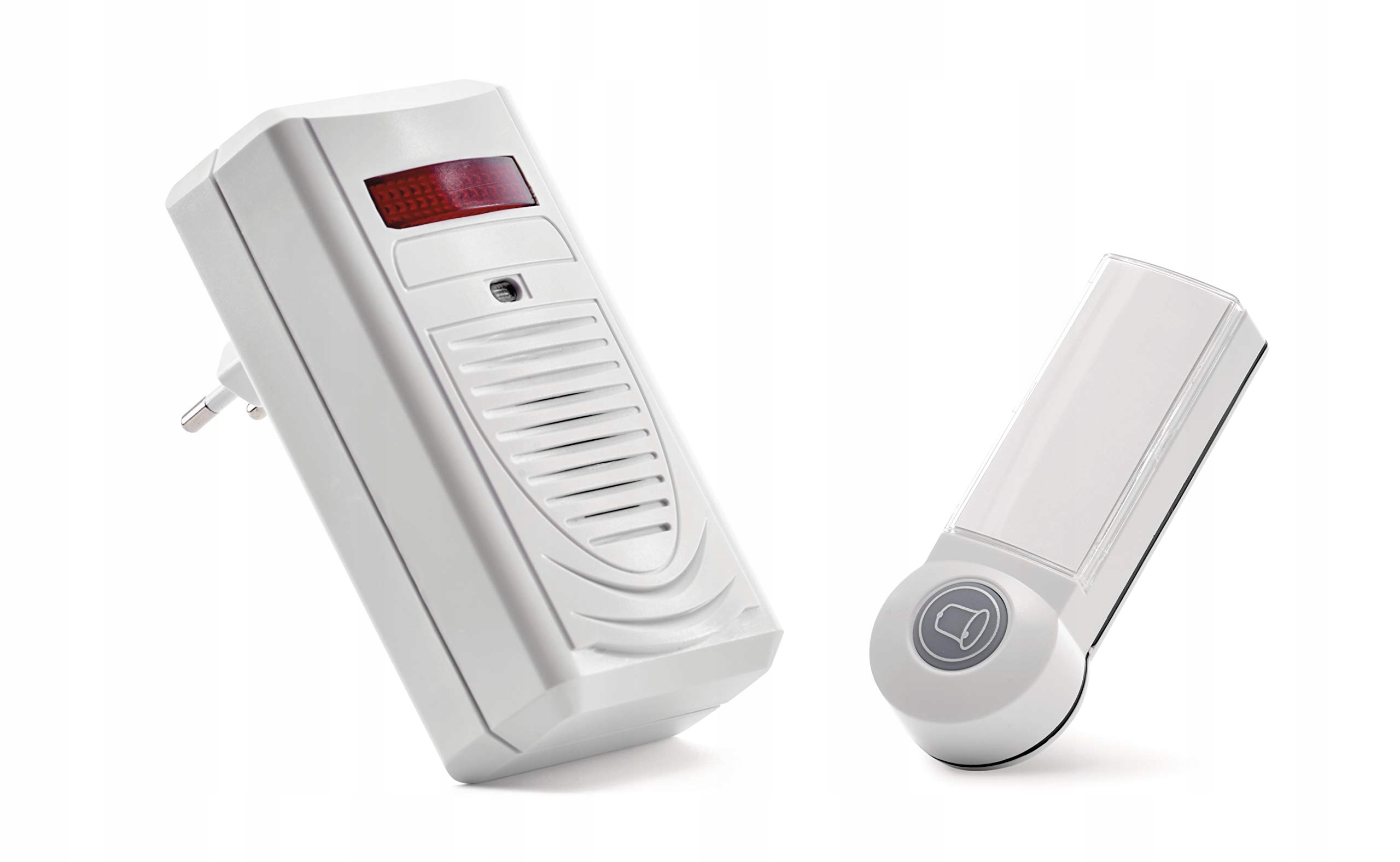 Nadajnik + Odbiornik zestaw (przycisk + dzwonek) z FUNKCJĄ SAMOUCZENIA: dzwonek i przycisk są automatycznie sparowane na częstotliwości 433 mHz