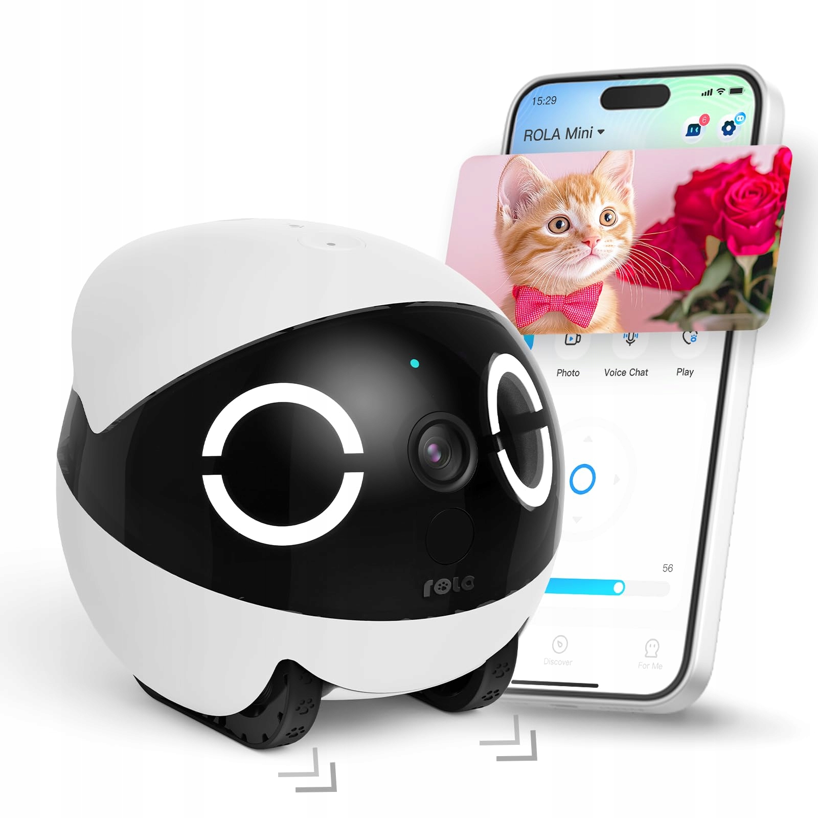 Słodkie światło oczu i udostępnianie na wielu urządzeniach: Dziel się miłością, łącz wszystkich! Dzięki urokliwemu wzorowi światła oczu ROLA Mini dodaje każdemu zdjęciu dodatkowego uroku. Udostępnij robota-kamerę rodzinie i przyjaciołom.