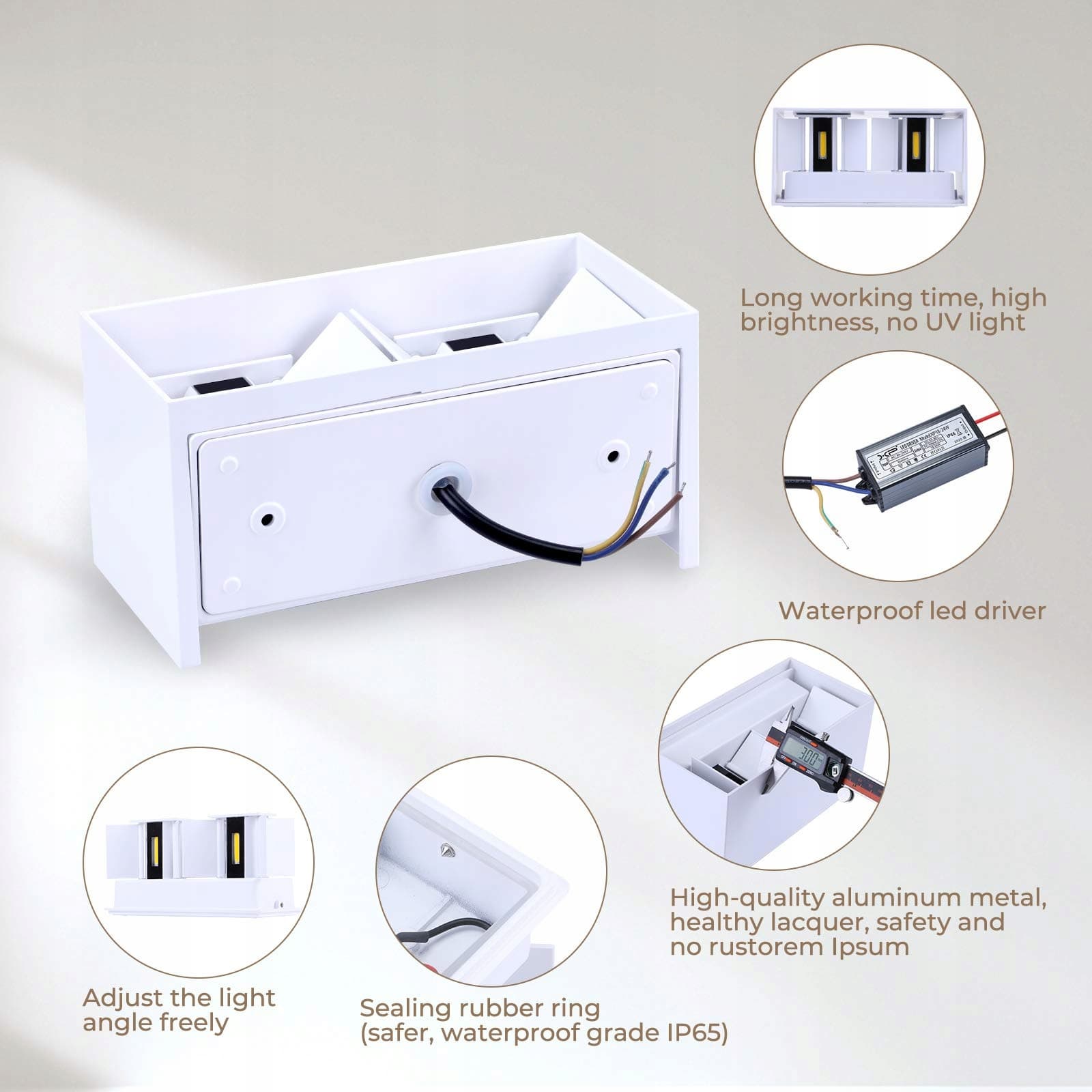 【Wymiary produktu】Te kinkiety zewnętrzne mają moc 24W oraz wymiary 20*10*10 cm. Spełniają różne wymagania dotyczące oświetlenia zewnętrznego, oferując bardziej ekonomiczne i wydajne rozwiązanie oświetleniowe.