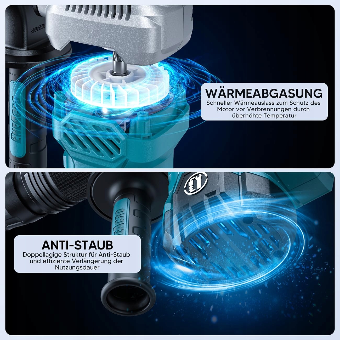 💪【PRZEMYŚLANE HUMANIZOWANE PROJEKTOWANIE】Młot wyburzeniowy 0845MB jest wyposażony w ochronę przed poparzeniem z przodu, aby chronić użytkownika przed możliwymi oparzeniami. A uchwyt regulowany o 360° nadaje się zarówno do poziomych, jak i pionowych wyburzeń. Ulepszony system antywibracyjny i miękki uchwyt PU znacznie zmniejszają zmęczenie, podczas gdy obudowa z stopu aluminium zapewnia trwałość i odporność, nawet jeśli zostanie przypadkowo upuszczona.