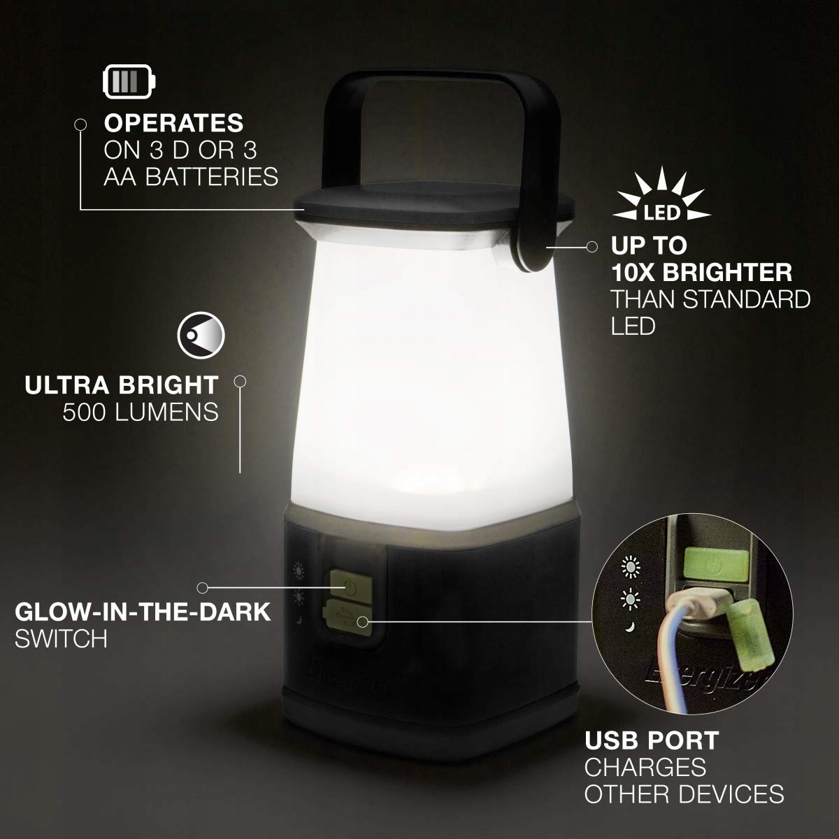 Ultra jasne oświetlenie 360°: Dostarcza do 500 lumenów mocnego światła LED, idealne do oświetlenia całego pomieszczenia i namiotu, doskonałe na kemping i do użytku na zewnątrz