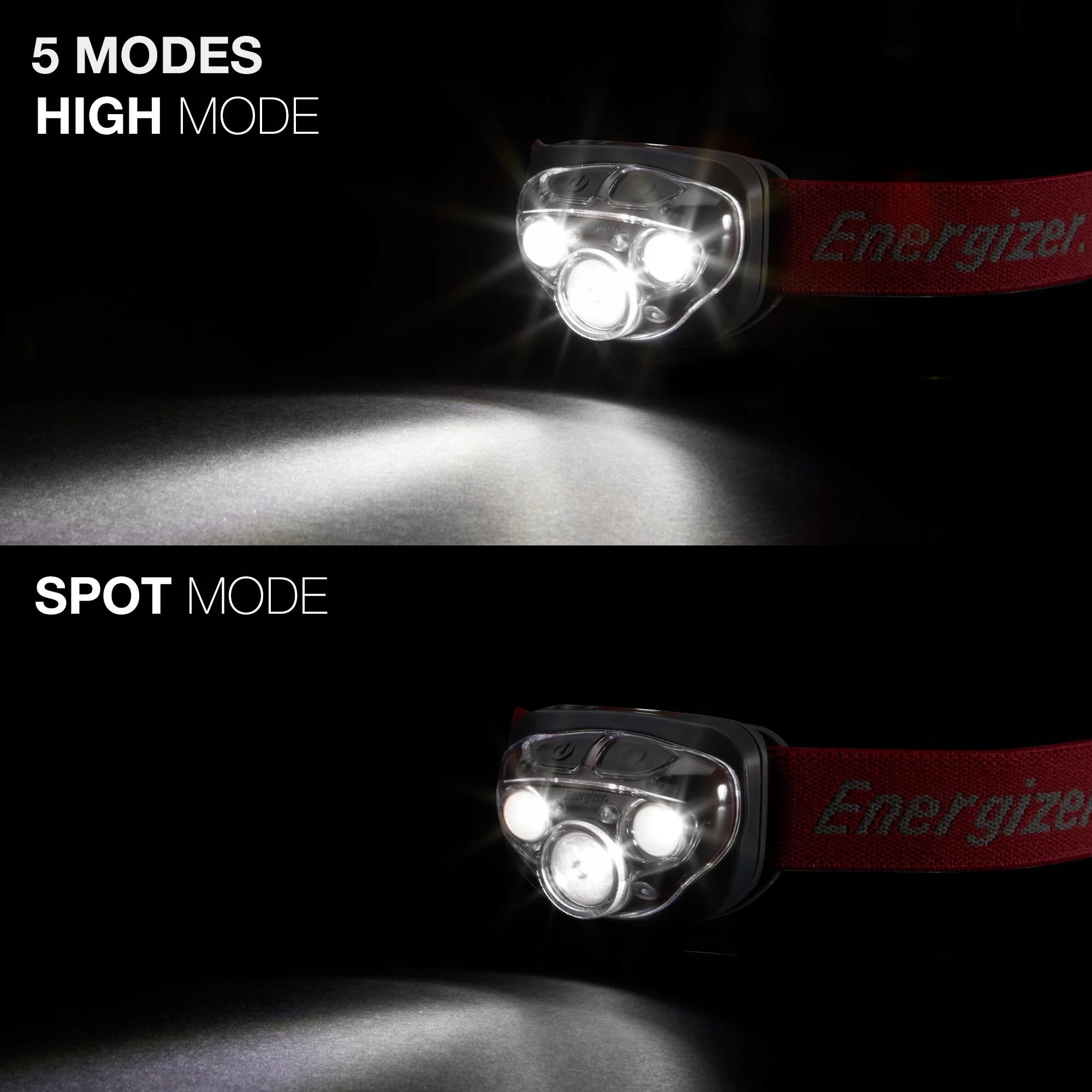 Energizer Vision HD+ 315 lumenów LED czołówka, czołowa latarka, rdza czerwona latarka na głowę, wodoodporna latarka, wydajna LED, idealna na kemping, wędrówki, bieganie, trekking, outdoor, baterie w zestawie, regulowana
