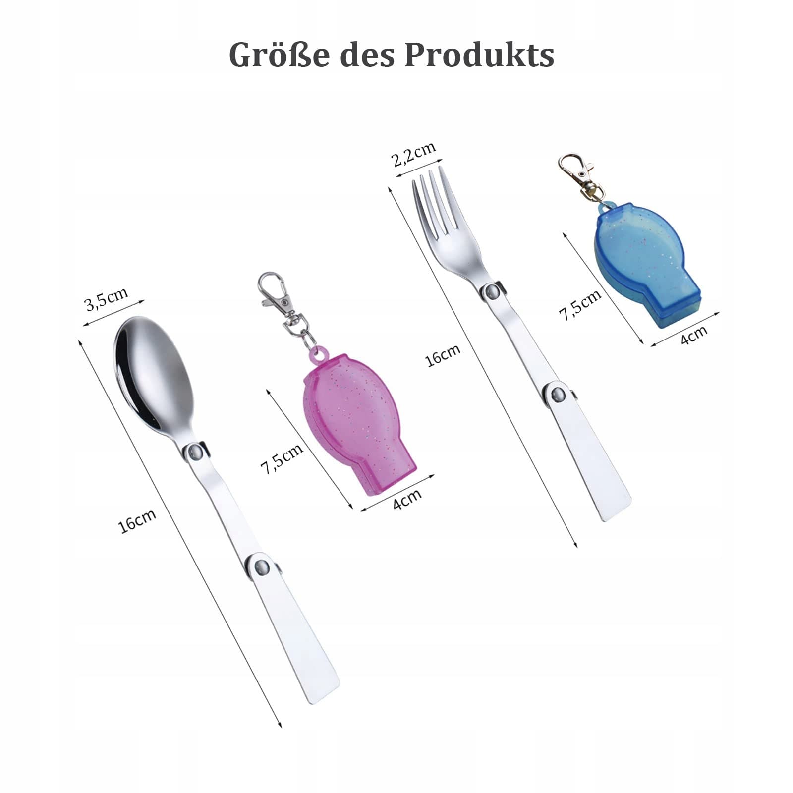 🍴【Zawartość opakowania】Otrzymasz składany widelec i składana łyżkę oraz dwa pojemniki do przechowywania. Widelec ma wymiary 16cm*2,2cm, łyżka 16cm*3,5cm, a pojemnik do przechowywania 7,5cm*4cm.