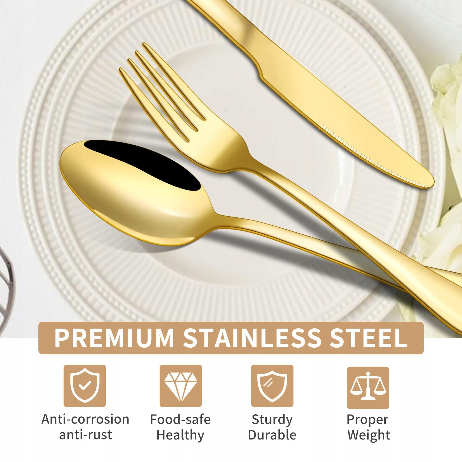 Złoty zestaw sztućców ze stali nierdzewnej, 20-częściowy zestaw sztućców ENLOY dla 4 osób, trwały prezent i odporny na zmywarkę, wysoki połysk nóż stołowy, widelec i łyżka do restauracji